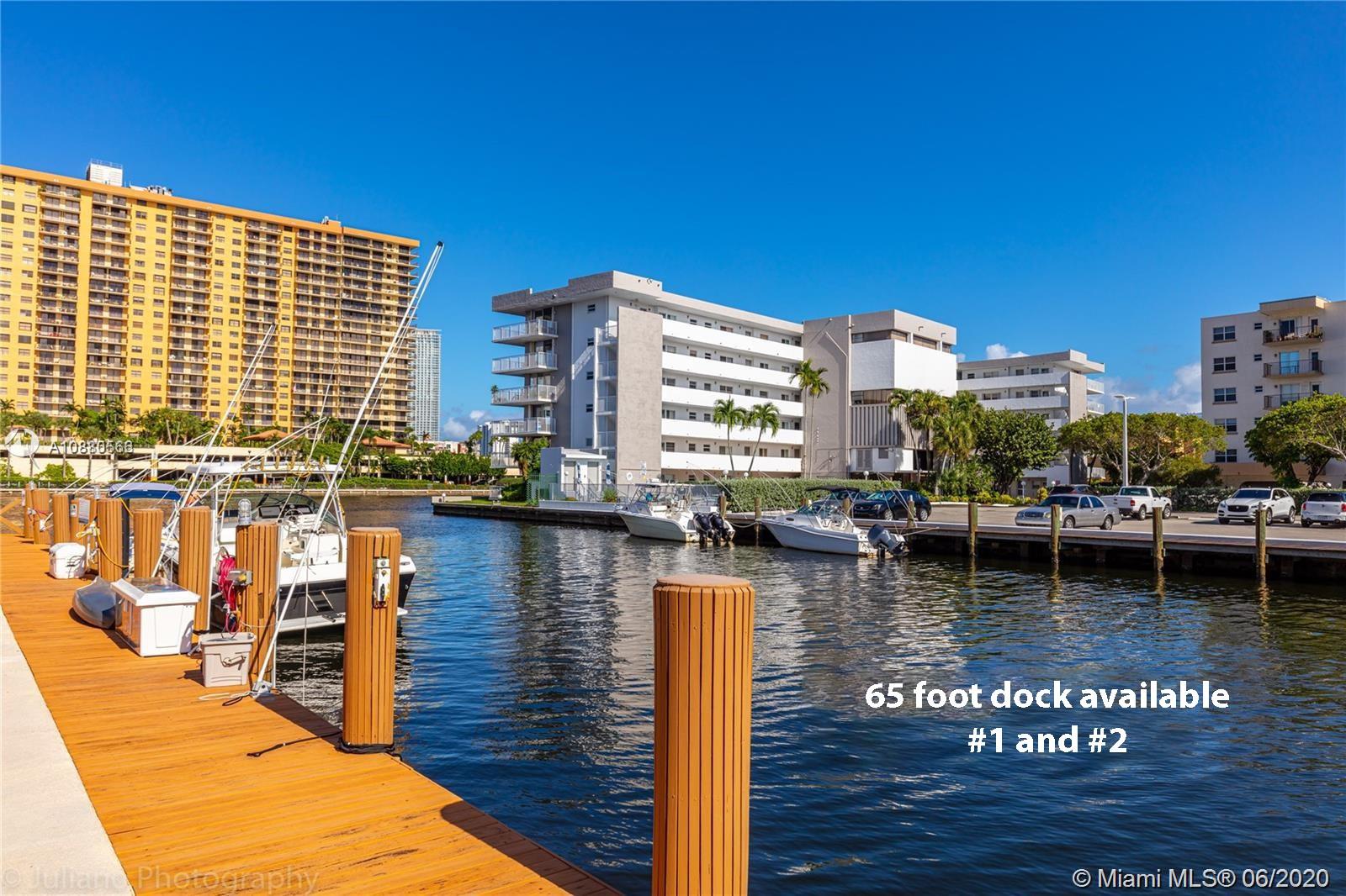 65 FT LONG , EXCELLENT LOCATION ON ONE MILE AWAY FROM SANDBAR & HAULOVER MARINA. EASY ACCESS TO OCEAN. NEED TO OWN AN UNIT AT THE CONDO TO HAVE THE EXCLUSIVE RIGHT OF USE 2 SPOTS FOR SALE, DOCK #1 ( 30 FEET) AND #2 (35 FEET) MAINTENANCE FEES ARE : $85 PER MONTH FOR THE 2 DOCKS, INCLUDED ELECTRICITY AND WATER. DOCKS CAN BE SOLD ALSO SEPARATELY, ASK FOR DETAIL.
