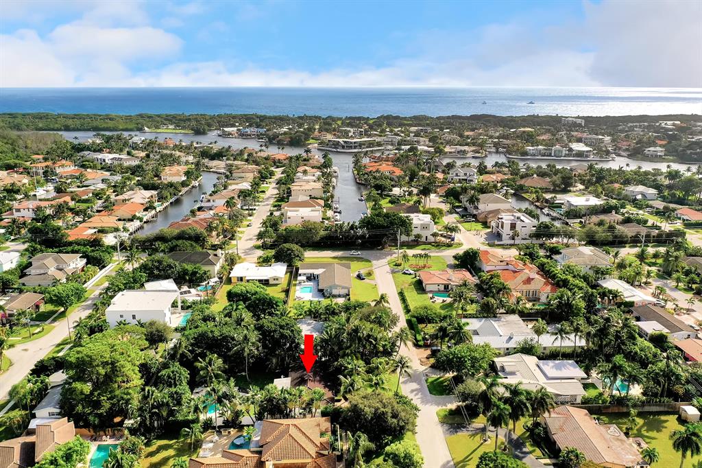 Fabulous one of a kind piece of property in the ''Golden Triangle'', Mizner Park area! This lot is 168 x 80! This is an OVERSIZED LOT and the only house on the block with OVERSIZED DEEP LOT. This is a PERFECT KNOCKDOWN LOT to build a new modern home! The property is located WITHIN WALKING DISTACE FROM THE OCEAN, MIZNER PARK AND RESTURANTS! READY TO MOVE IN or add on and you have a perfect little home! Beautiful oversized self- chlorinating pool placed strategically for an easy addition. FPL buried wiring! Lush Landscaping! Newer carrier AC unit! Added 250-gallon LP gas tank for stove, grill and clothing dryer, totally scraped and renovated kitchen, all new stranded bamboo floors throughout, finished Florida room and newly added travertine deck walkway to pool! SOLD AS IS!!! This is a 2
