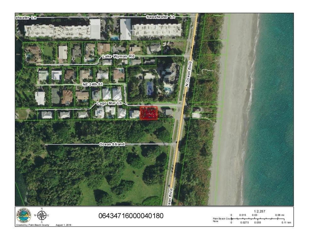 Ideal location on Boca Raton's barrier island. Perfect parcel to build on and has R5 zoning. Located between Palmetto Park Road and Spanish River Blvd., off of State Road A1A. The property is steps from your private, deeded beach access. Lago Mar Lane is situated close to all shopping, dining, enteretainment and other necessitites in Boca Raton. It is minutes from Fort Lauderdale and West Park Beach international airports and is located on a private, dead-end street. A duplex currently sits on the property. Within one mile of 980 Lago Mar Lane are Red Reef and Spanish River parks, a nine-hole, oceanfront golf course and Gumbo Limbo Nature Center. Large pedestrian paths along A1A allow for easy walking and biking to these, and additional waterfront attractions/restaurants.