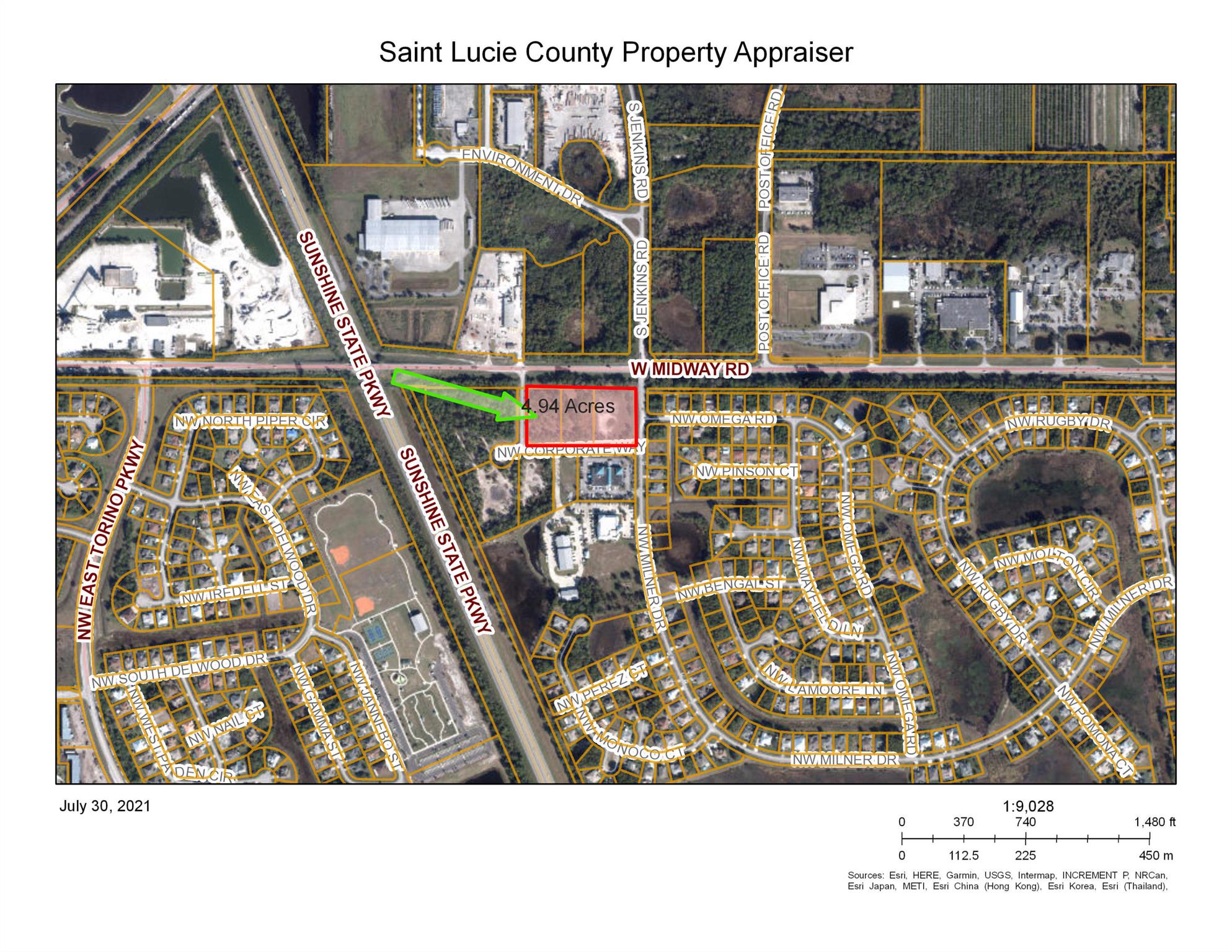 Prime 5 acre Commercial site on Midway Rd. Surrounded by roads on 4 sides. Midway is a rapidly growing main corridor connecting I-95 & US 1. Amazon has built a 1 million sf distribution facility at Midway and I-95 only 1.3 miles west of this site. The nation's largest Wavegarden Surf Park is to be located at the NW quadrant of Midway and I-95. (200 acres to include 800 homes, 600 hotel rooms and 400,000 sq ft retail space). New Turnpike interchange is in planning stages immediately west of the site with FDOT most likely taking the West 1.5 acre lot of this property. See attached FDOT maps. Traffic lights are possibly coming to each end of this property see attached sketch in documents tab. Click on ''more'' line to see additional information