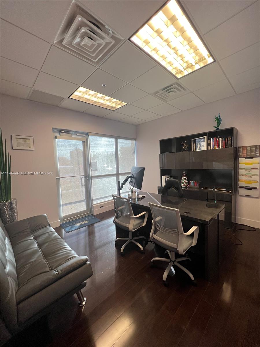 Great location within 1 mile of Walmart, palmetto, turnpike and 836. It's a great space with double entrance. Only 1 of 3 offices on the left wing with store front entrance of internal building entrance as well. Contains a front office and a rear office/conference room with a kitchen area.