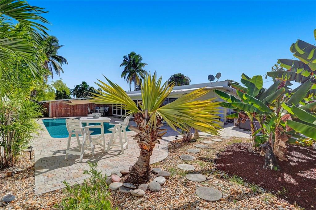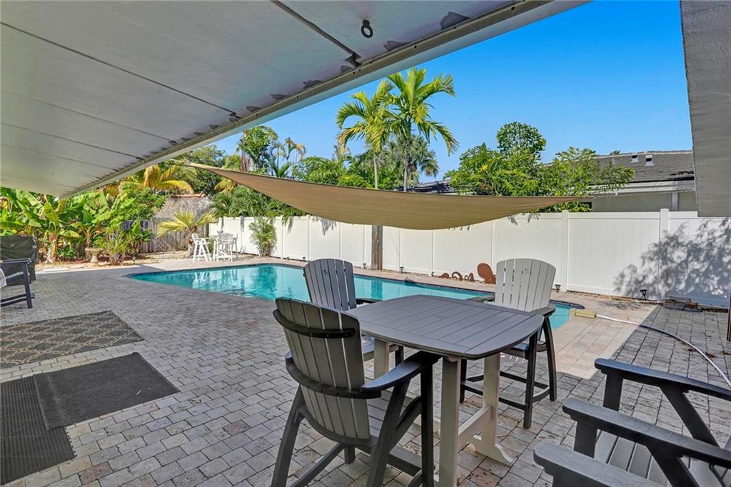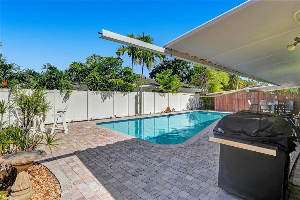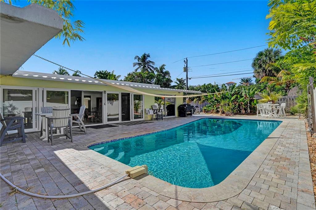Come see this Mid Century Modern pool home in the perfect location! This house has endless potential to update or rebuild to make it your own. The front entrance atrium is private and gated, welcoming you to peace and tranquility. Open floorplan with 3 bedrooms, 2 bathrooms, large fully fenced-in backyard for privacy, and carport for 2 cars. Floor-to-ceiling patio sliders open all the way to make this the perfect home for entertaining family and friends. Enjoy large parties or family gatherings year round with the oversized pool and spacious private patio area. Partial impact windows. View of the pool from your master bedroom. Located in of the best East Fort Lauderdale neighborhoods, close to the airport and Las Olas. Fine dining and more nearby. Just a 5-minute walk to the beach
