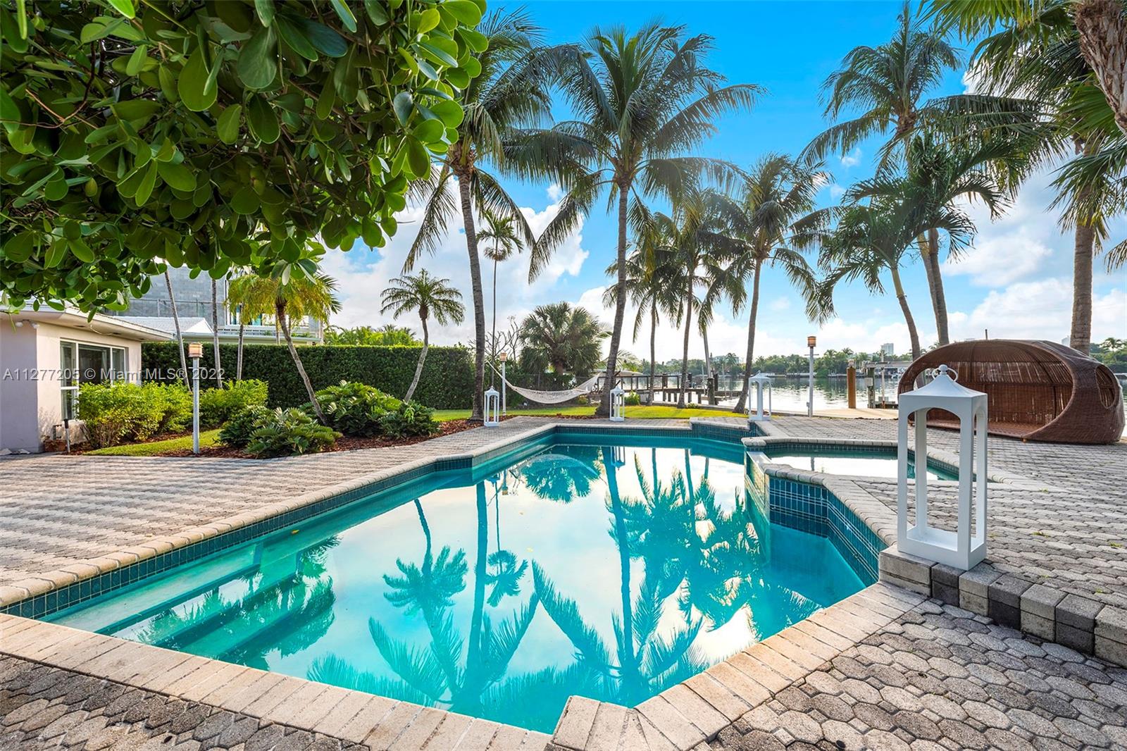 Land for development!! Existing single story waterfront home in quiet Surfside neighborhood can be used until you knock and build. House situated on oversize 15,000 lot with southern sunset views. Four bedrooms and 4 bathrooms, living room, dining room, spacious kitchen, swimming pool, spa, 75 feet of waterfront, boat lift and Jetski lift, 2 car garage, Tesla charger. Close proximity tennis courts, walk to the beach, Bal Harbor Shopping mall, Publix, Starbucks, The Shul of Bal Harbor, Ruth K Broad school, Surfside community pool. Rented until January 31st. Only exterior being shown for land value. Demolish and build up to 9,500 SF new dream home!!