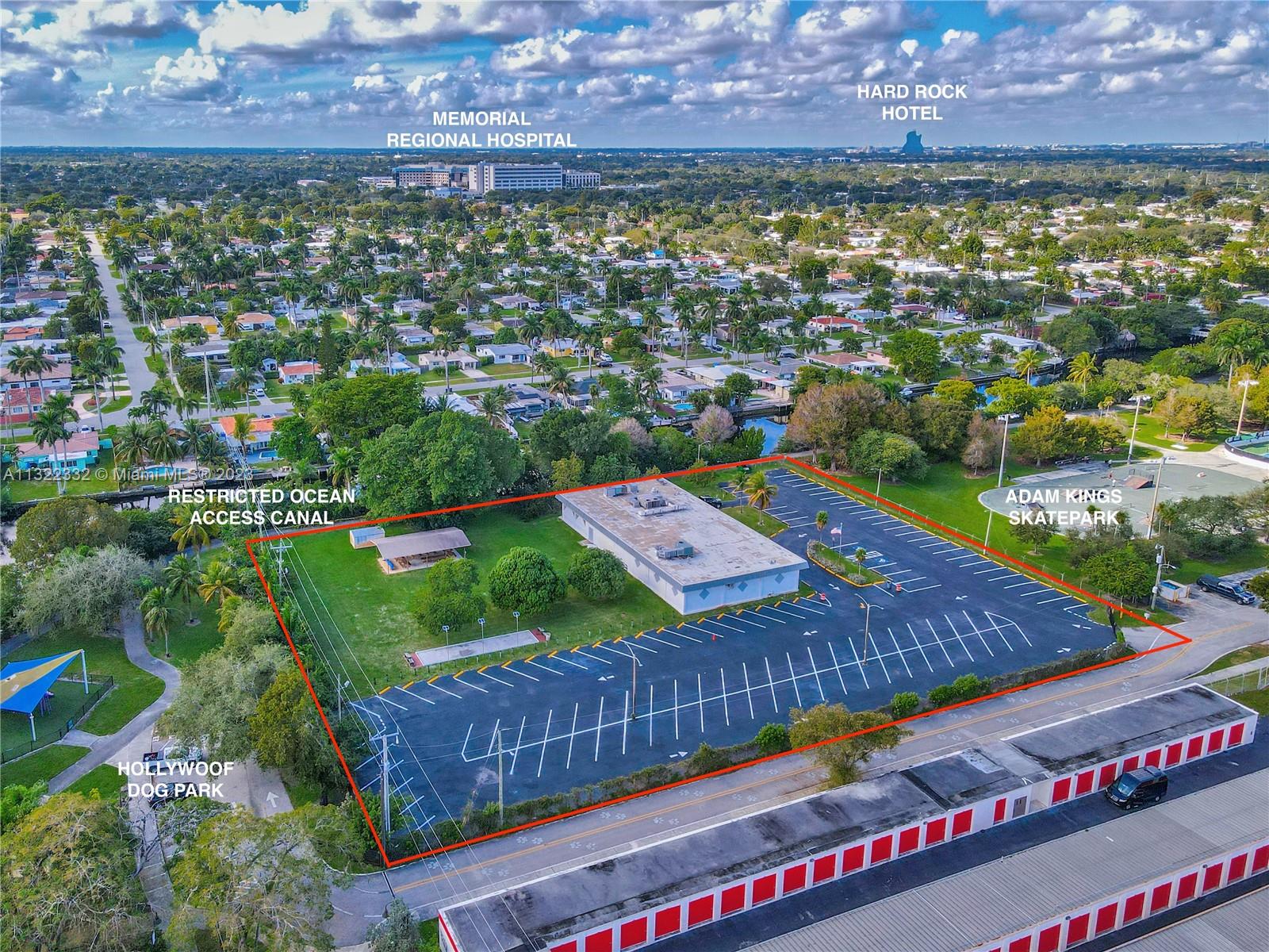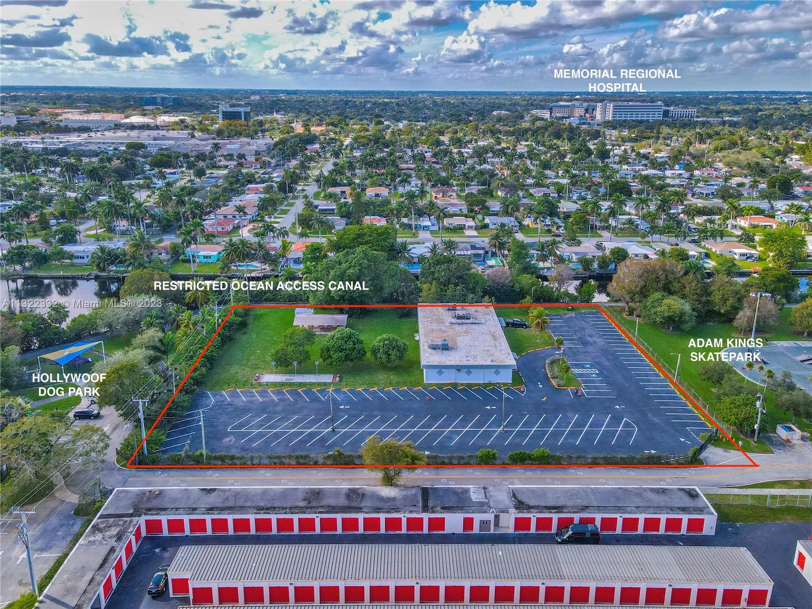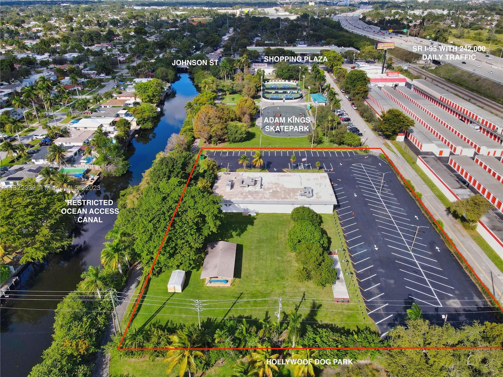 SELLER FINANCING AVAILABLE - This property in Hollywood, Florida, presents a great investment opportunity in a FAST developing city. It is located within one of the city’s ten C-4 Medium/High-Intensity Commercial districts and is the only one with ocean-access canal frontage. The zoning permits various businesses, such as hotels, offices, clinics, schools, places of worship, retail spaces, personal services, pawnshops, and automotive sales and repair. The zoning building specifications allow for a maximum height of 175 feet, 1,486,734 square feet of built area, 17 stories, a footprint of 87,454 square feet, and up to 36 units per acre. Additionally, the property has excellent visibility, with a daily traffic count of 242,000 on I-95, 46,500 on Hollywood Boulevard, and 43,500 on Sheridan St