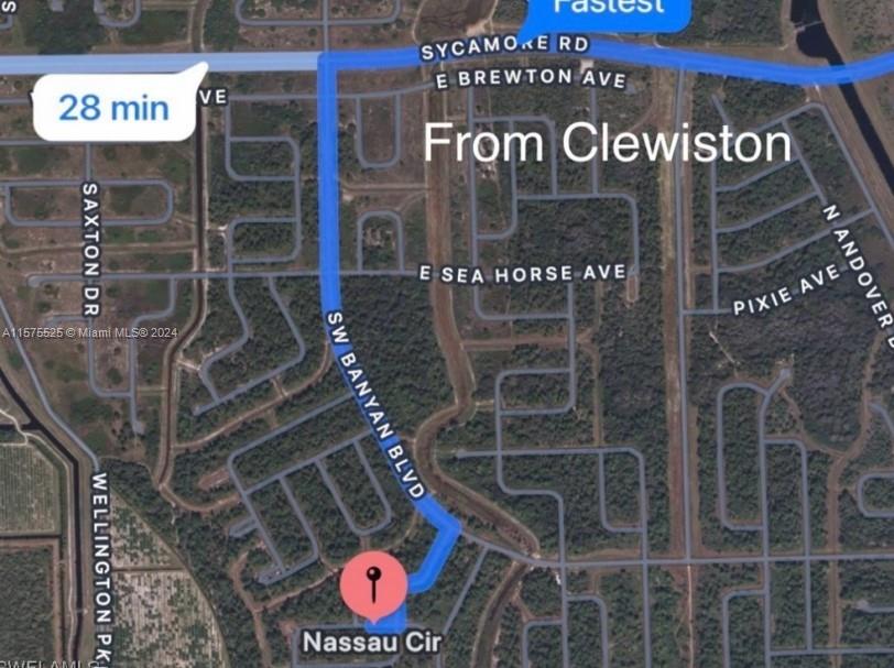 Beautiful 0.23 acres wooded lot in Banyan Village ideal for home site or investment. Many new homes are being built in this community. From Hwy 80 take Wellington Parkway South. Go East of Sycamore Rd. Go South on SW Banyan Blvd. Go West on Nassau Circle. Find the property on the left (South East side of the street), three lots north of the corner of Nassau Circle and Nassau Circle. Pass by and let us know if you wish to place an offer. BUYER PAYS CLOSING FEES INCLUDING DOC STAMPS ON THE DEED.