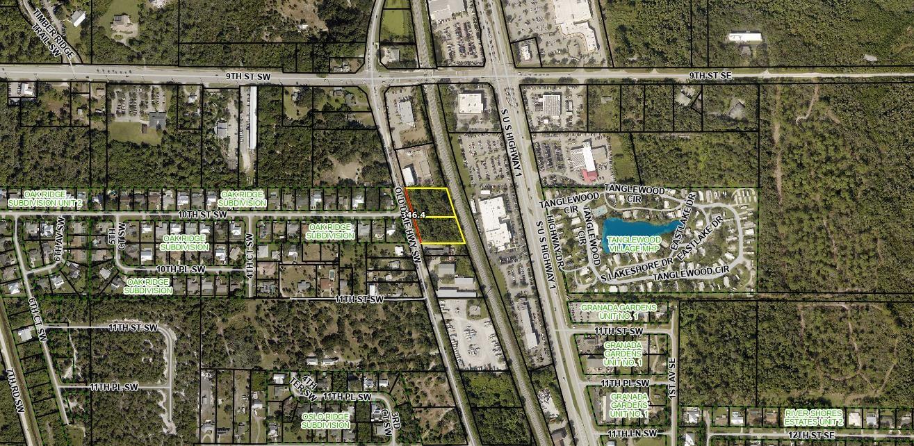 2+/- acres of commercial property available in prime location! Listing consists of two lots approximately one acre each, with a combined frontage of approximately 350 feet on Old Dixie Highway SW, a short proximity to US Highway 1, and in the fast-growing corridor of Oslo Road and the new I-95 Interchange (under construction). Lots of possibilities. Will sell parcels separately (1 acre each).