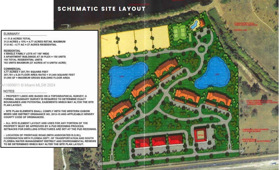 A DEVELOPER/INVESTOR'S DREAM PROPERTY boasting 1100+/- FT on SR 80 just east of the City of LaBelle, FL and 900+/- FT on the intracoastal waterway, the Caloosahatchee River segment. This 31.47 acres is currently zoned agricultural with the benefit of an agricultural exemption for low taxes. Municipal water and sewer line availability must be checked with Port LaBelle Utilities. The Future Land Use is Western Oxbow Mixed Use which allows commercial, not only on SR 80, but would be encouraged on the river in the form of marinas, dining, accommodations, and recreational uses. Residential uses are allowed for 186 units with more a possibility. The Caloosahatchee River is situated between two locks for safety and is considered to be a "Safe Haven" for boaters during hurricanes.