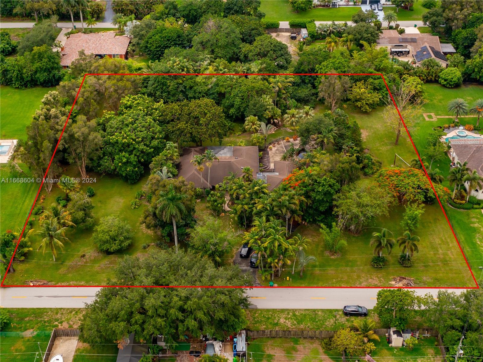 Rare Land Opportunity under appraised value in Plantation Acres! Unparalleled potential 2.36-acre property. Envision complete renovation of existing 4,562 sq. structure or start fresh and build the luxury oasis of your dreams. Land can be subdivided into 2 1+ acre lots or kept as one grand estate to create a private paradise unlike any in Broward County. Sep structure, shed, expansive deck overlooking 8' deep pool. Fully fenced, pond w/coral, eco-system w/fruit trees, palms, lush plants, local wildlife. 2CG, some hurricane windows, new electrical panel, 2 AC units, industrial septic system, deep well. Private and serene. Minutes to Sawgrass Mills Mall,dining, major highways. No HOA,this property offers the freedom to create your ultimate sanctuary w/horses - scheduled your private showing!