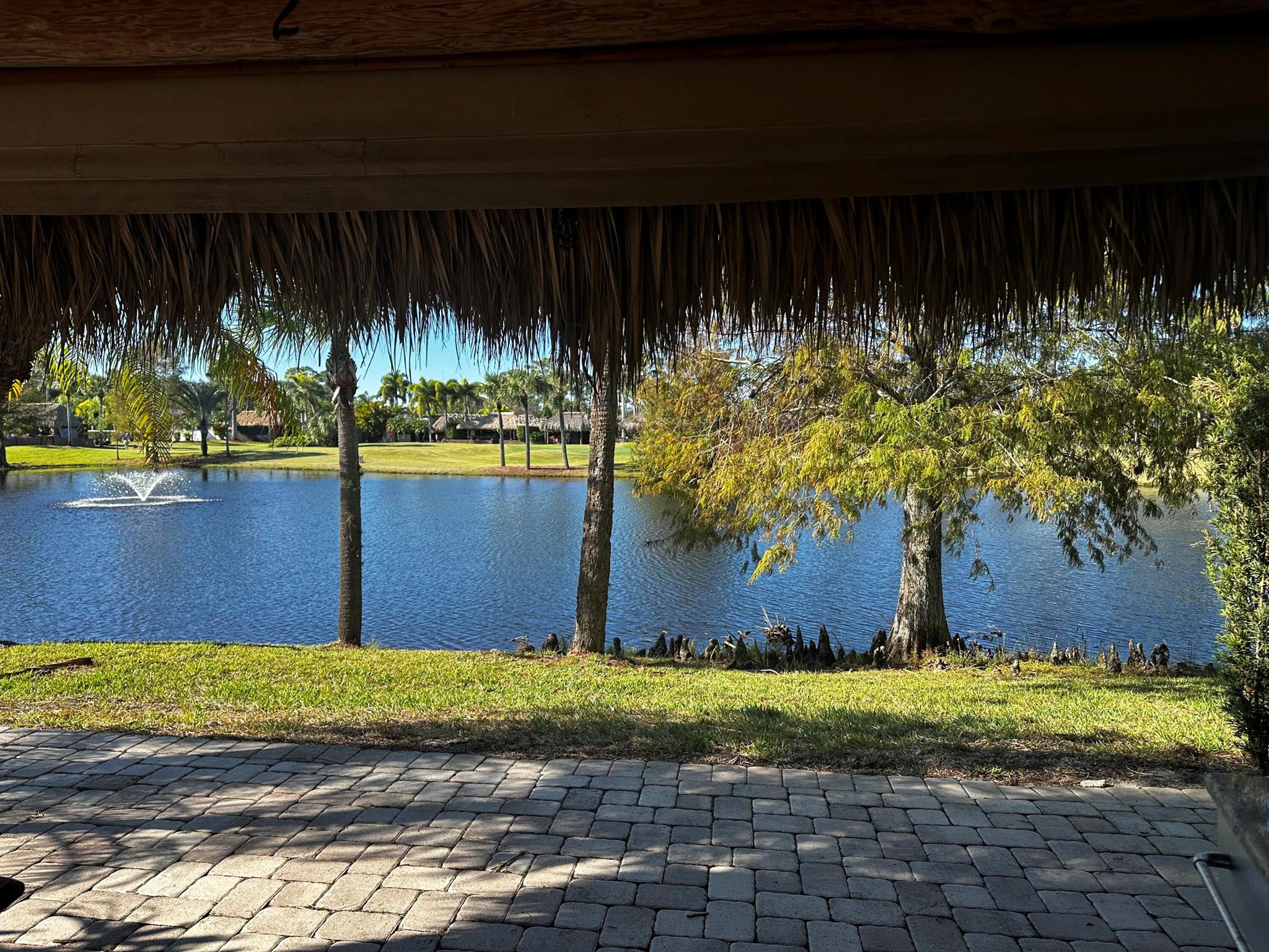 Paradise defined at the Motorcoach Resort at St. Lucie West! If beautiful sunsets over a lake and the tranquility of water fountains are your idea of paradise - look no further! Great back-in lot located close to the main entrance and the clubhouse. Large tiki with well equipped kitchen including a dishwasher and full size refrigerator. Motorized eisenglass shades deploy at the push of a button to allow for outdoor enjoyment in case of inclement weather or chilly night. Nice landscaping and mature trees add privacy and shade. Easily accommodates a 45' coach! Also a designated spot for your golf cart. 18 hole golf course, pool, gym, pickleball, dog parks are only a few of the amenities that accent a full social calendar during season! Class A coaches only for this gated community.