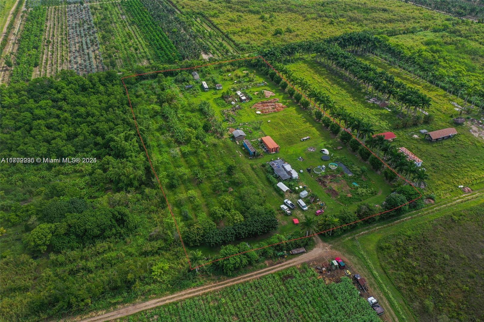Beautiful 5.09 acres at the Redland you could build your Dream Home or create your farm. Land is Clean and has a mixed of fruit tree, fully fenced has 2 shipping container small mobile home and well water there is a nature preserve on the south side located in a primary agricultural area close to the everglades. Located 5 min off paved road most drive 5 min through the dirt road from 217 ave.