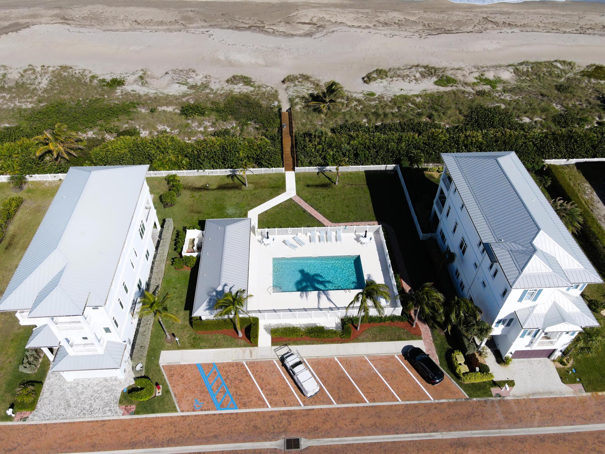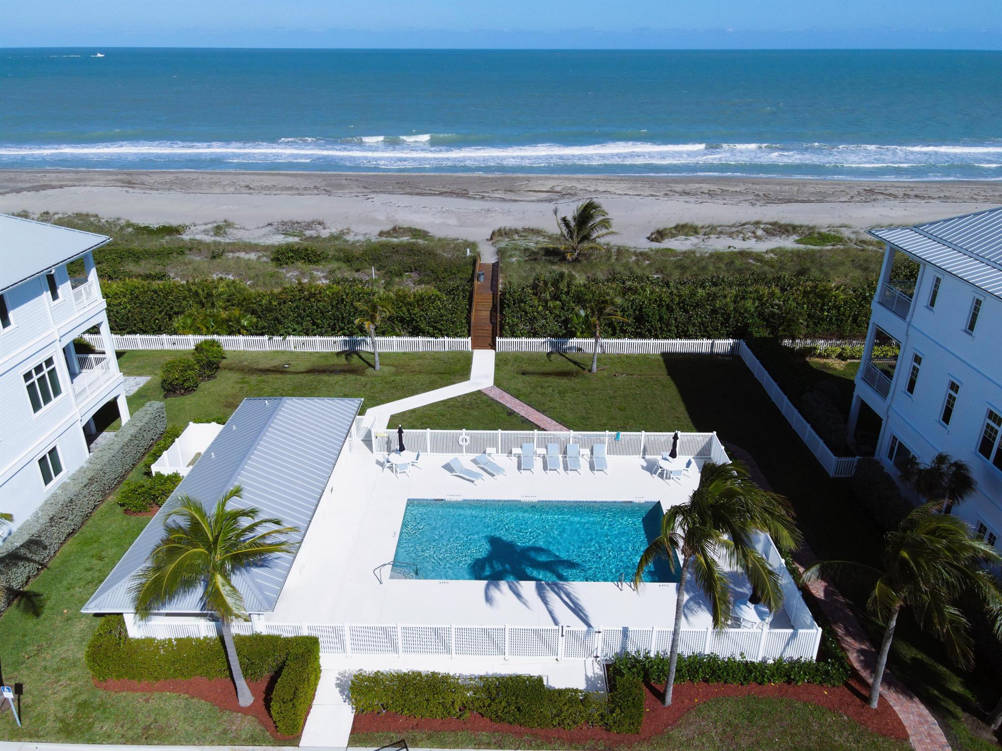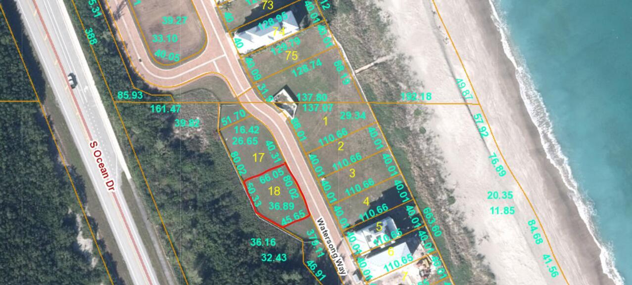 Waterson is a unique seaside community located between the Atlantic Ocean and the Indian River on Hutchinson Island. It's an exclusive gated subdivision with a beautiful entrance featuring lush landscaping, palm trees, tropical foliage, and brick paver streets. The community offers a heated pool for residents. Homes in Watersong showcase Key West and coastal-inspired architecture, constructed to the highest standards. They are at least three stories high and come with private elevators, multi-car garages, and hurricane impact glass windows. Among the 93 homes and lots, 61 directly front the ocean, providing stunning views and easy beach access.