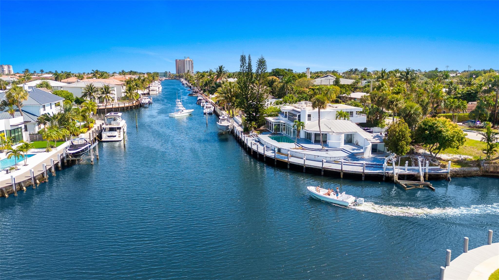 Experience unparalleled waterfront living on this exceptional lot with 200' of waterfront along the South Grand Canal in Lighthouse Point. Whether you envision creating a luxurious waterfront estate, designing your dream home, or constructing a spec home with up to approximately 7,000 square feet of living space, this property offers endless potential. Enjoy direct ocean access with no fixed bridges and a location just minutes from the renowned Hillsboro Inlet. The unique point lot is perfectly suited for accommodating a large yacht, ensuring you can enjoy both a dream home and dream boat lifestyle. Embrace the opportunity to build your ideal waterfront retreat in one of Lighthouse Point’s most desirable locations.