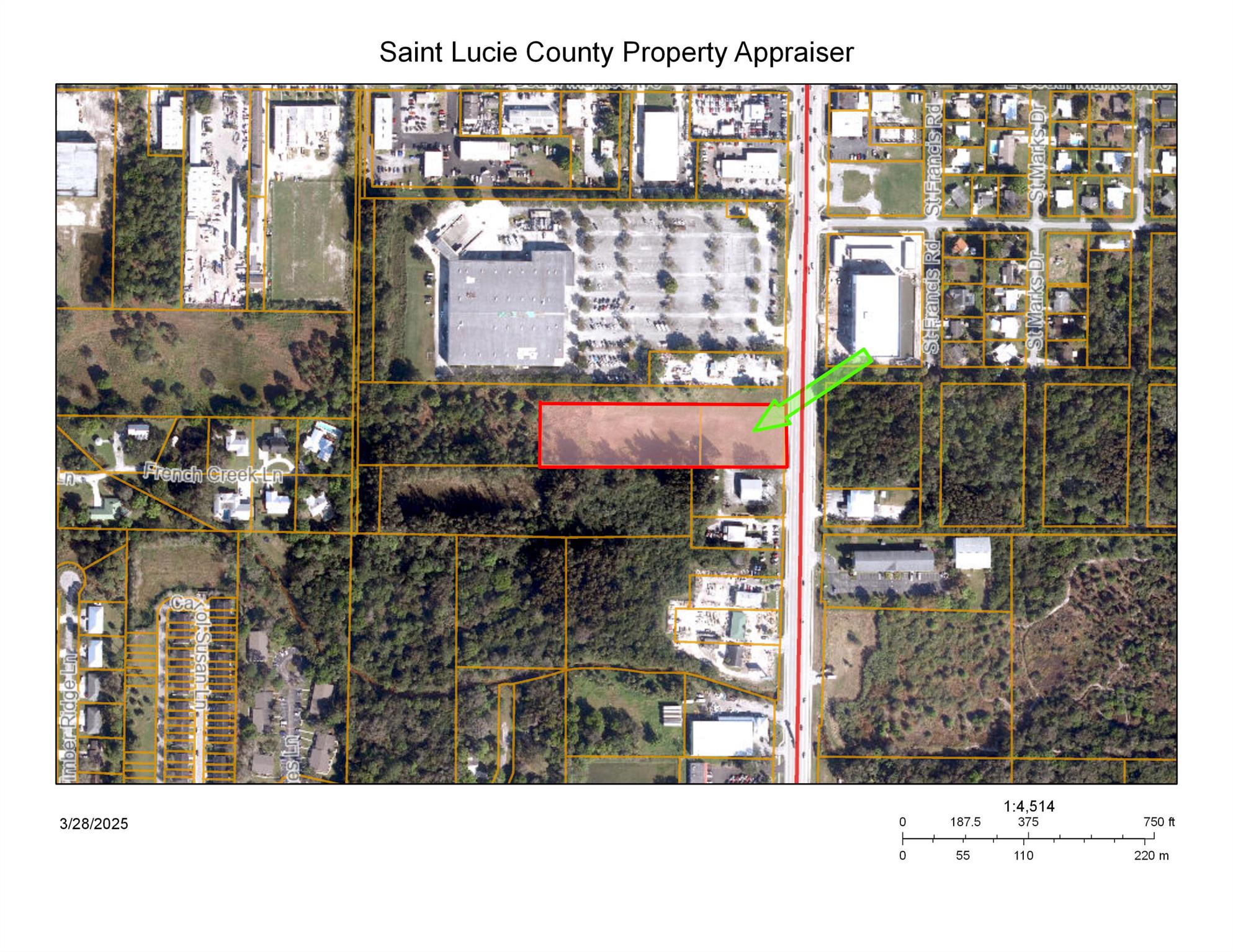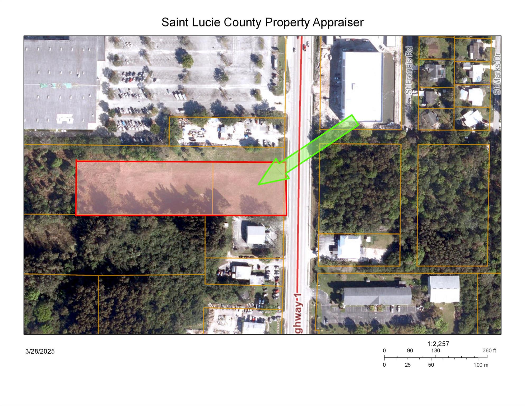 Prime US #1 Development Site. 3 acres with 180 feet on South US #1. This site is high & dry and mostly cleared. Average daily traffic count in front of this property is 30,741 cars per day! Lots of new development in this area of South Fort Pierce including the new Kolter Development just 1/2 mile north on US #1. Over 600 new homes on 130 acres.See Survey and Topo under documents tab.12 inch water main on East side of US #1 and 8 inch sewer force main also on East side of US #1. City natural gas line in front of the property(see utilities map under documents tab).