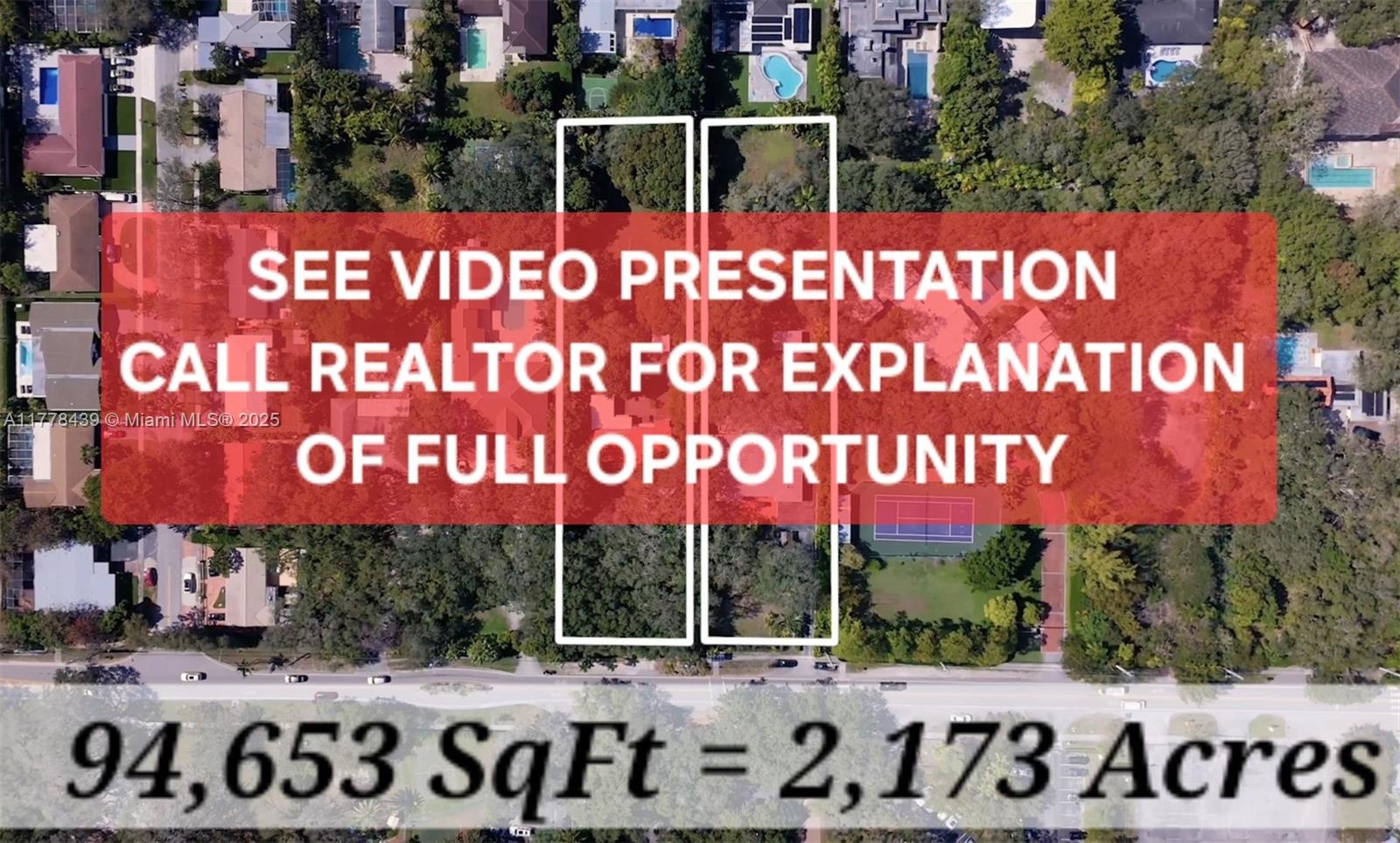 See Video. This is 1/8 Ownership, We're offering a 1/8 portion of this exceptional development opportunity or (10,000 to 12,000 SqFt) with the goal of forming a partnership to subdivide the property into 8 individual lots for Luxury single-family homes. The full lot of 94,653 SqFt is also available for $ 7 M. (See survey) Great Value, less than $ 75 SF, Market Value $ 100 SF, Local;18820 & 18840 NE 22nd Ave, Miami, FL 33180 (Private Properties, Don't go without appointment). Strategically located near Aventura, The Beach & I-95. This combined property offers unbeatable rare potential in a rapidly growing area, w/high appreciation: