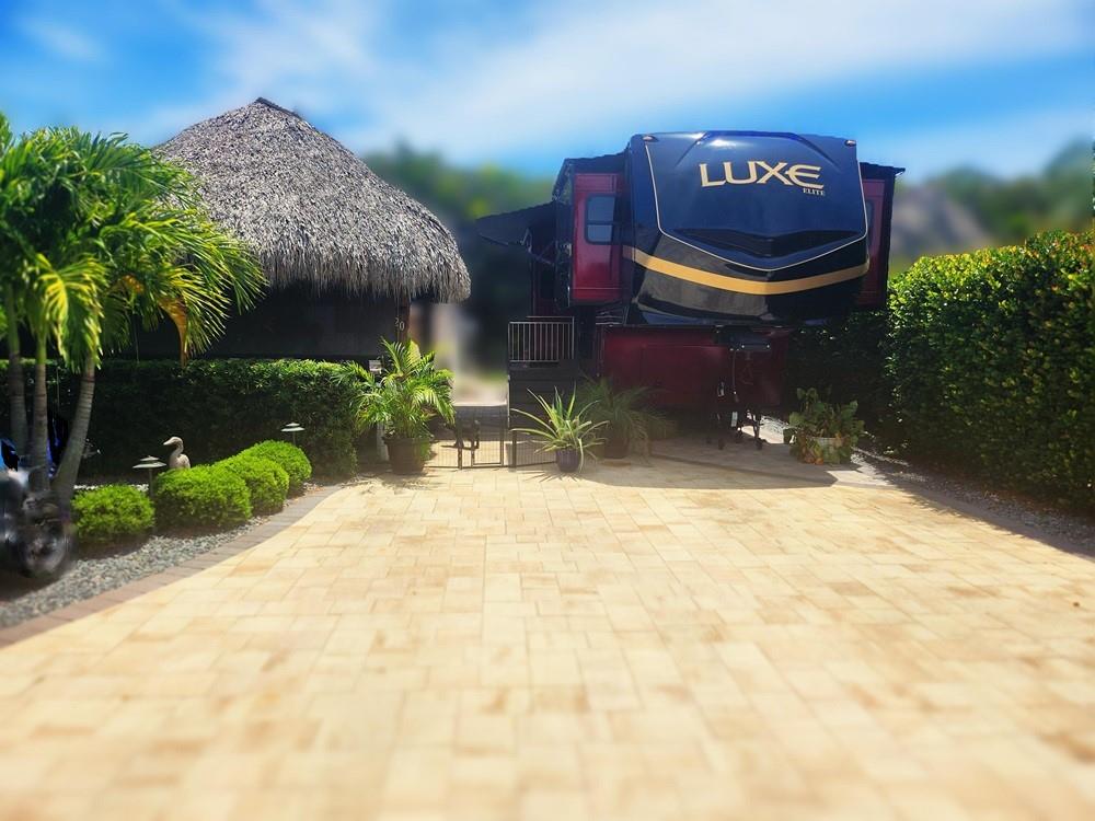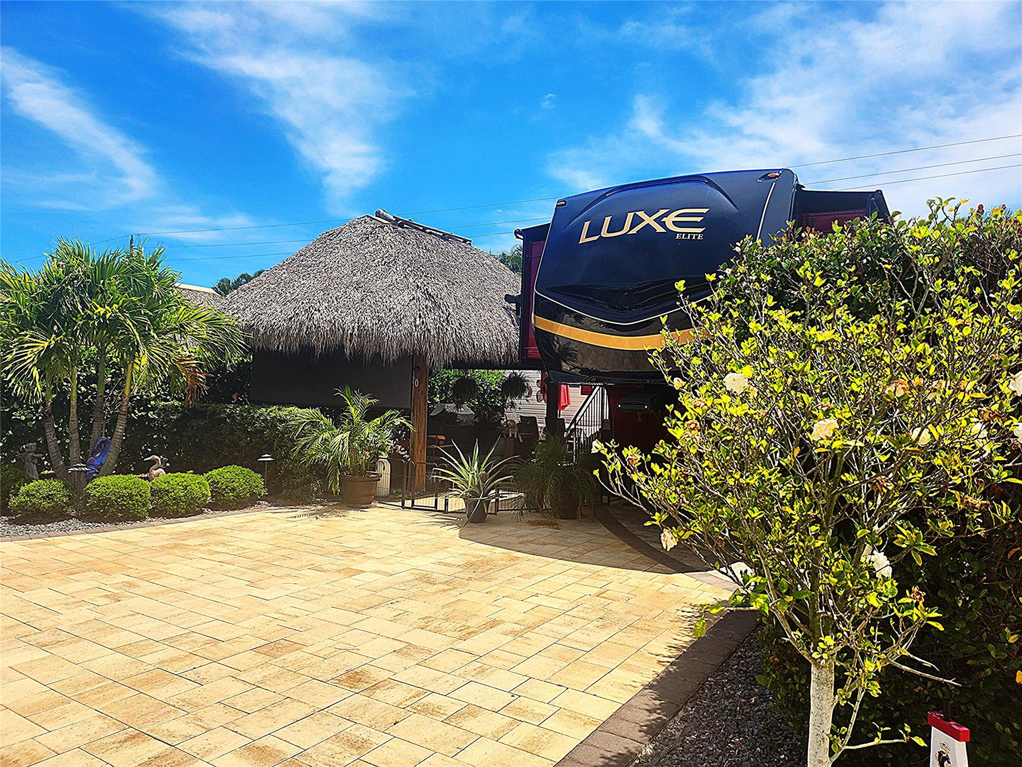 5 STAR RESORT, SILVER PALMS LOT 20. Premium spacious lot, surrounded w stable mature landscape, privacy buffer. 2021 additions, 12'x14' finished Casita, A/C, W/D included 1/2 bath. 12'x14' rugged authentic Seminole Tiki, w elect, fire pit, patio furniture, BBQ, over 1100 sf pavers, lot accommodates 60'+/-rig. Public water/sewer. Silver Palms Clubhouse, library, pool, spa, gym, billiards, special events, activity calendar, friendly neighborhood, minutes to town, dining, shopping, walking distance to the great lake Okeechobee, fishing, boating, lounging. MOVE IN READY! NOT INCLUDED: Custom Luxe 44' 5th wheel FL. Not a typical RV, this is a home on wheels. Luxury, 6 slides, spacious kitchen, king bdrm, out door TV. Sold together or separately call for Luxe pricing. Unique opportunity.