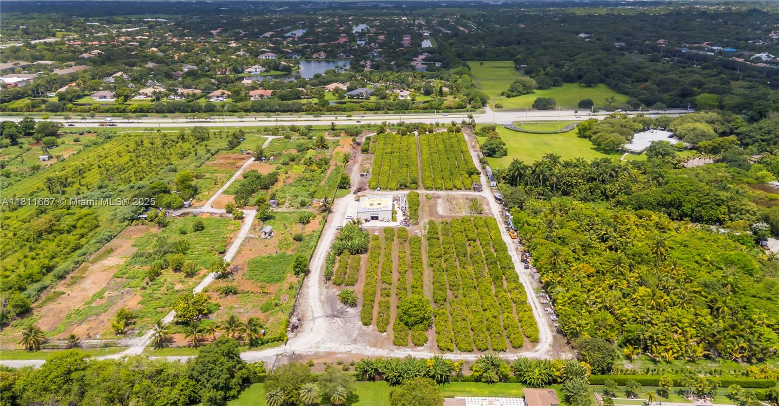 8.9 Acres!! Unique property in Davie surrounded by million-dollar homes in a fast-growing, family-friendly area with "A" rated schools. Fronts Flamingo Rd, backs Flamingo Gardens, and borders the gated Ridge at Laurel Oaks. Fully fenced with gated access. Operating tropical fruit grove since 1987 with ~1,000 starfruit trees and other varieties (macadamia, avocado, banana, etc.). Features include a 5" well, advanced irrigation, and a 4,800 sf insulated steel building (Cat 5+ rated) with 1,140 sf A/C space, 2 kitchens, 2 baths, and 3 offices. Industrial features: mezzanine, 800A power, racking, security system. Includes prepped 1-acre homesite for a 4,000 sf home. Ideal for family compound, agribusiness, or investment. Agriculturally assessed, very low taxes.