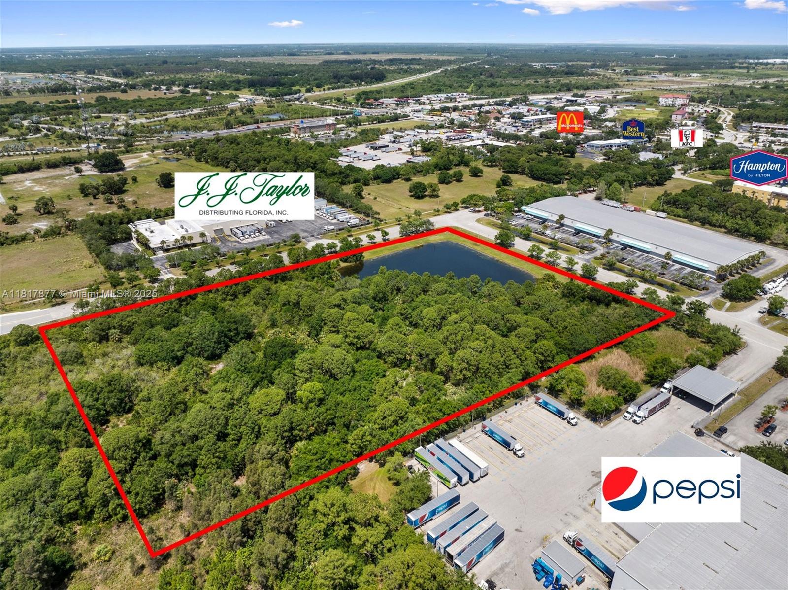 PRESTIGIOUS CROSSROADS PARK OF COMMERCE. LOT #21 IS A 5.66 +/- ACRE PLATTED LOT LOCATED AT THE FRONT ENTRANCE OF THE CROSSROADS WITH LAKE VIEWS. SITUATED BETWEEN I-95 & FL TURNPIKE WITH IMMEDIATE ACCESS TO BOTH. THIS SITE IS WITHIN A TWO-HOUR DRIVE TO OVER 75% OF THE STATE'S POPULATION, MAKING IT A SUPERIOR LOCATION FOR DISTRIBUTION. CLOSE PROXIMITY TO WALMART REGIONAL DISTRIBUTION HUB & NEW "RECENTLY OPENED" AMAZON FACILITY. TENANTS INCLUDE: PEPSI COLA, RYDER TRUCK, J.J. TAYLOR DISTRIBUTION, HULLETT ENVIRONMENTAL, NUCO2, NEXT PLUMBING, ABC SUPPLY CO., HAMPTON INN, COMFORT INN & MANY MORE.OVER 100' OF ROAD SYSTEM (2 LANES IN-2 LANES OUT) TO ACCOMIDATE DOUBBLE TANDEM TRACTOR TRAILERS. DESIGNATED A FOREIGN TRADE ZONE. PERFECT SITE FOR OUTSIDE STORAGE LOCATION. READY FOR DEVELOPMENT