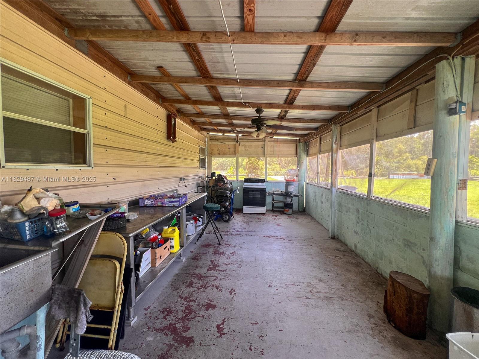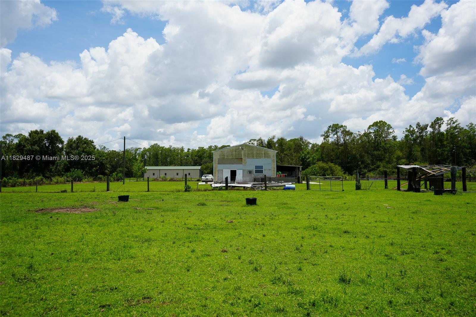 Barndominium on 4.96 acres 15 minutes from downtown Fort Myers! This unique property is comprised of cleared pasture, a pond, and a barn with living quarters. The structure is built on a concrete slab and is of metal construction. Featuring 2 large bays (garage doors have been removed), a loft, and a lean to shed on the side, this property would be perfect for anyone wanting to start their own farm or store vehicles/ equipment. The living quarters inside the barn is a studio style setup with a kitchen area and bathroom complete with a standup shower and spacious vanity. An additional bathroom space is located upstairs in the loft. In addition to the convenience this property offers, it also boasts privacy. Schedule your showing for this unique opportunity today!