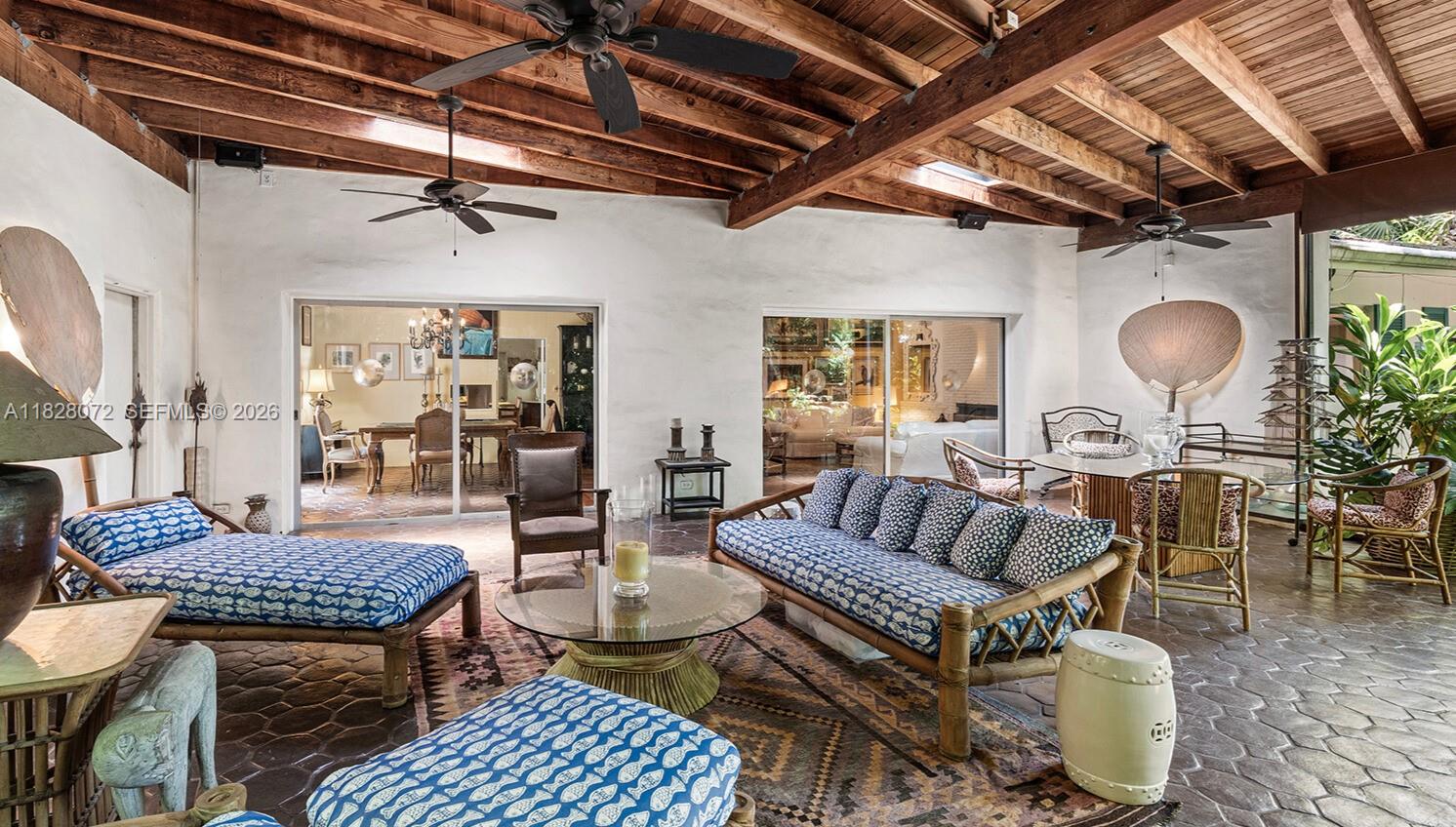 Classic Coconut Grove estate offering prestige, security, and a coveted address in The Moorings. Twenty-four-hour guard service with entry by resident consent only. Two lots totaling 25,241 square feet at sixteen-foot elevation, with access to a private residents’ marina offering direct bay access, and three neighborhood parks: Marina Park, Waterfront Park, and Children’s Park. Walk or bike to private schools, dining, shopping, and more. A traditional Florida home held by the same family for fifty-four years. Custom-built mid-century residence with high ceilings and open-concept living and dining rooms, featuring a fireplace and opening to a covered screen patio that seamlessly integrates the pool and expansive lush yard. Spacious primary bedroom with his and hers walk-in closets and bathrooms. Three en suite bedrooms, eat-in kitchen with stainless steel counters, pantry, ample storage, laundry room, workshop, and two-car garage. Build new or restore. This is an unmatched opportunity combining privacy and security, a central and walkable Coconut Grove location, and a rare double-lot size within one of the neighborhood’s most exclusive enclaves.