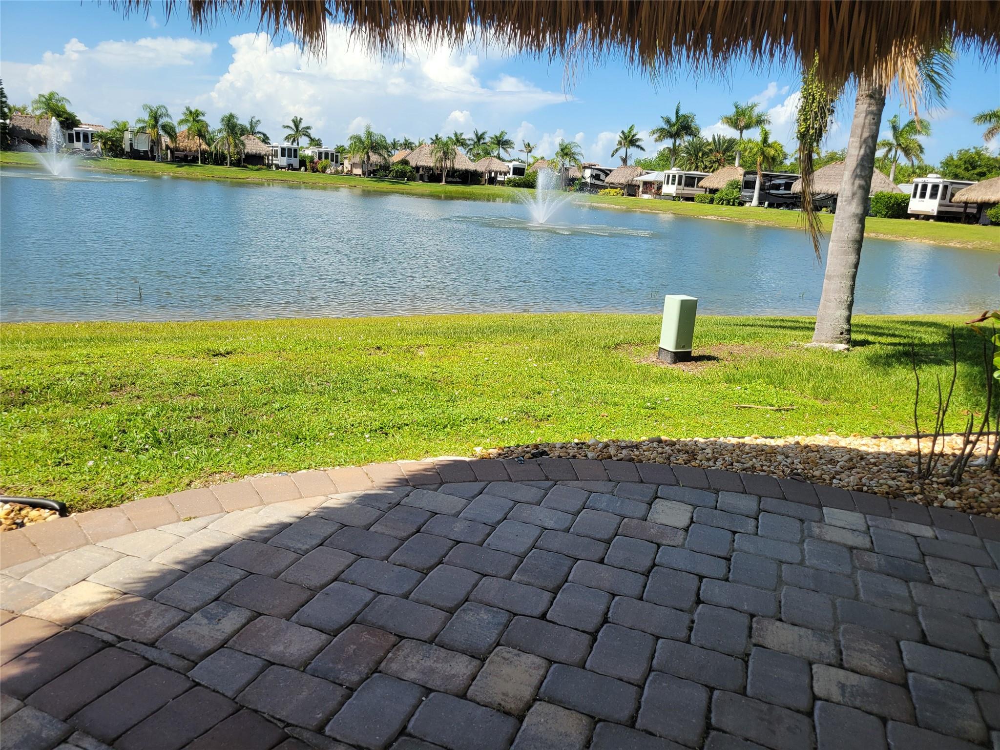Amazing lakefront lot located in Silver Palms Rv Resort, a 5 star gated community 1/4 mile from Lake Okeechobee. Lot features a unique custom designed octagon tiki with roll down shades overlooking the lake and fountains. 12X14 casita with 1/2 bath, ac, washer/dryer ,fridge ,queen size murphy bed, pantry and kitchen countertop. Retractable awning from casita provides additional shade for outdoor cooking. Excellent opportunity for year round or seasonal use. Lot can be rented when not being used. Daily activities, clubhouse, card, billiard, library and fitness center Poolside cafe with live music. and so much more awaits you at this well maintained and active community. Escape the cold every year and see why Silver Palms is the place to be.
