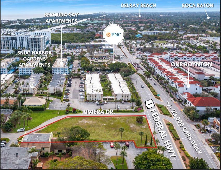 REMAX 360 is pleased to present the potential of "BOYNTON BEACH" at this location. This property encompasses an irregular lot of approximately 0.52 acres, strategically positioned directly on S Dixie Highway and just one block away from the Ocean. The site includes an approved site plan and allows for additional leasable footage of approximately 25,000 sqft of office space across four floors. While initially envisioned by the current owner as an office redevelopment project, the zoning permits a diverse range of uses, offering various investment opportunities.
