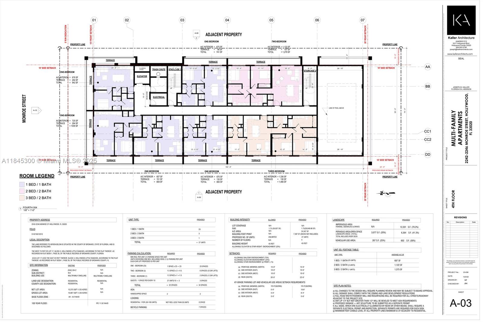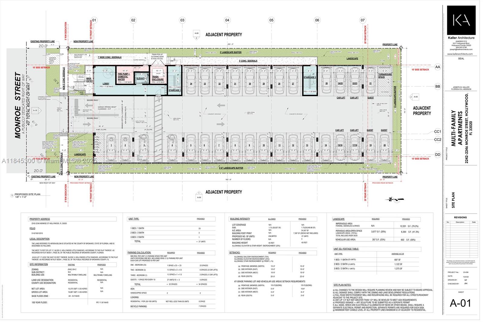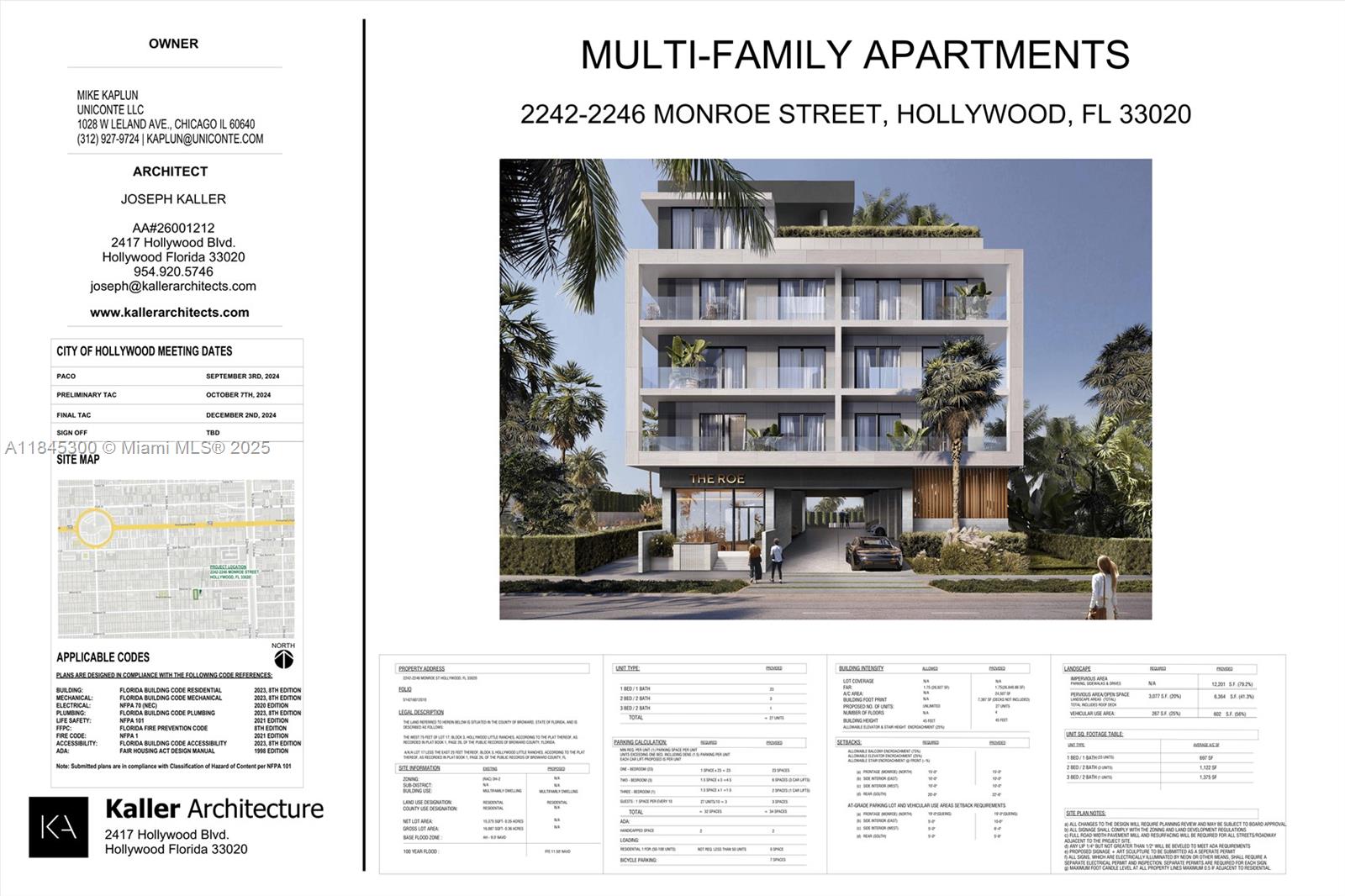 We are excited to present a rare development opportunity lot in the heart of Hollywood. This DH-2 zoned site is shovel-ready, with approved plans and permits for a 4-story, 27-unit multi-family building. The development plan includes: 1, 2, and 3-bedroom spacious units; Rooftop deck with open-air pool; Green space amenity with sun deck, BBQ area, and lounge zone; Fitness center; 34 covered parking spaces, bicycle parking. Located just a 10-minute walk from Young Circle and an 8-minute drive to Hollywood Beach, this site offers unbeatable access to restaurants, arts and transit. Approved construction plans available; Full geotechnical investigation completed; Zoning and permitting confirmed for immediate build-out. Close with permit in hands, start construction next day!