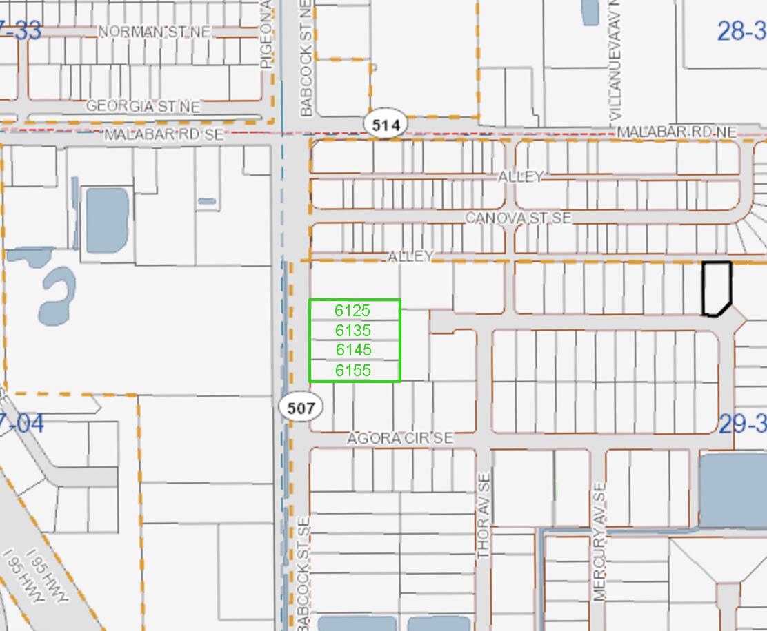 Rare Development Opportunity - 4 Adjacent Commercial Lots in Palm BayAssemblage of 6125, 6135, 6145 & 6155 Babcock St SE offers prime frontage along one of Palm Bay's busiest corridors. Large commercial sites of this scale are increasingly scarce, especially in the city's fastest-growing area. Surrounded by new residential communities and just minutes from major national retailers, dining, and services, this location delivers exceptional visibility and access. Ideal for retail, medical, mixed-use, or other high-demand projects.