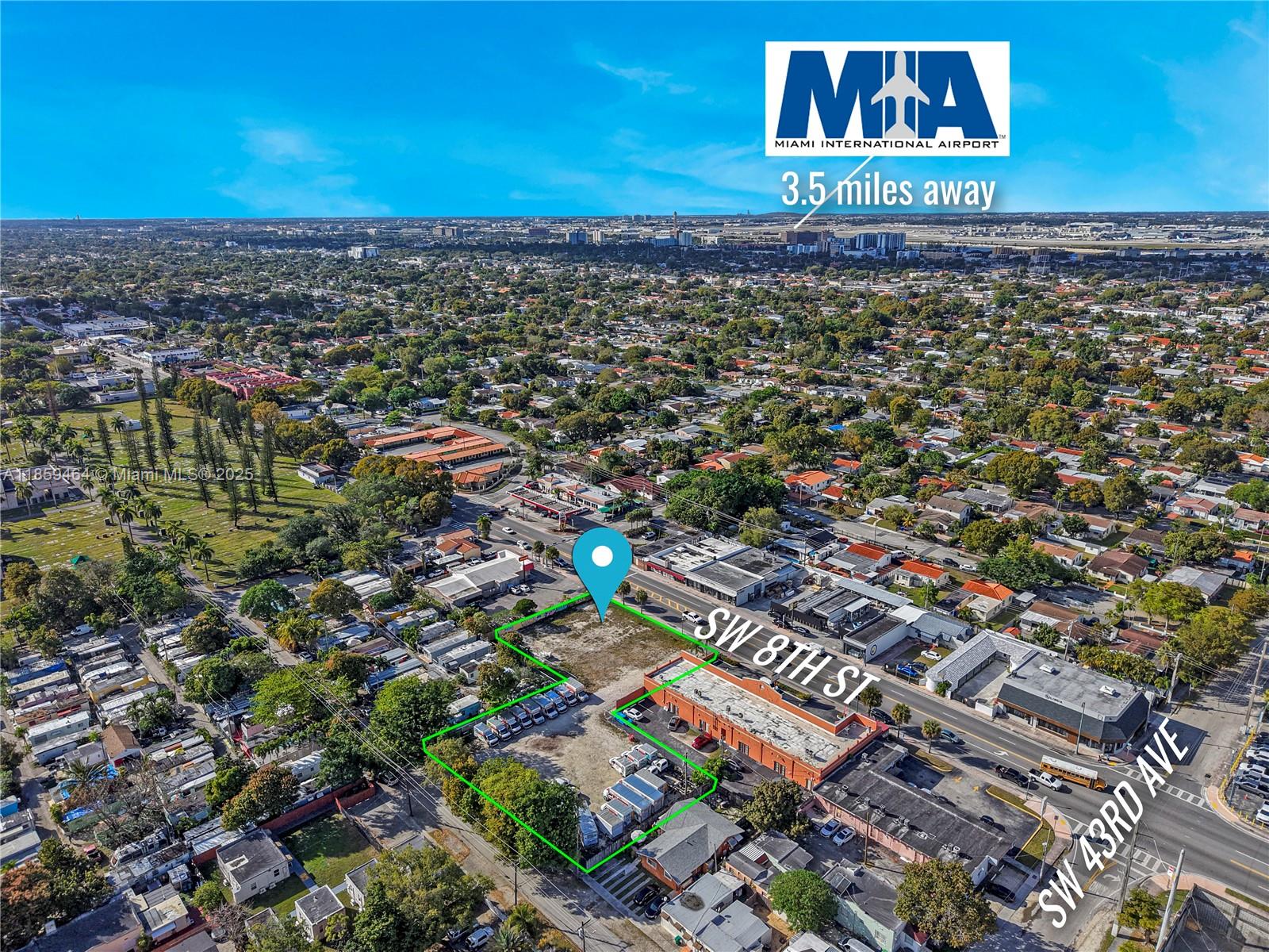 "Exceptional commercial land opportunity fronting SW 8th Street, offering outstanding visibility and exposure to high daily traffic. Located just minutes from Downtown Miami and Miami International Airport, this prime parcel is ideal for retail, office, or mixed-use development in one of the city's most vibrant commercial corridors. The property features excellent road frontage, flat topography, and convenient access to major highways. Zoned for commercial use, with utilities nearby and surrounded by thriving businesses and residential growth — a strategic location for your next development or investment project."