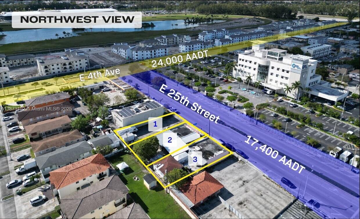 We're proud to present this strategically located, unique triple-parcel property on East 25th Street. With exceptional visibility and an impressive daily traffic count of 24,000 cars, the site spans a combined lot area of 17,250 sqft (approx. 120 ft x 153 ft), offering an outstanding redevelopment opportunity. Ideally positioned near key medical facilities and emerging developments, this property is primed for a variety of commercial uses, including medical offices, retail, restaurants, offices, and educational facilities. It is located directly in front of Leon Medical Center East, down the street from Hialeah Hospital and adjacent to the Hialeah Park Casino development.