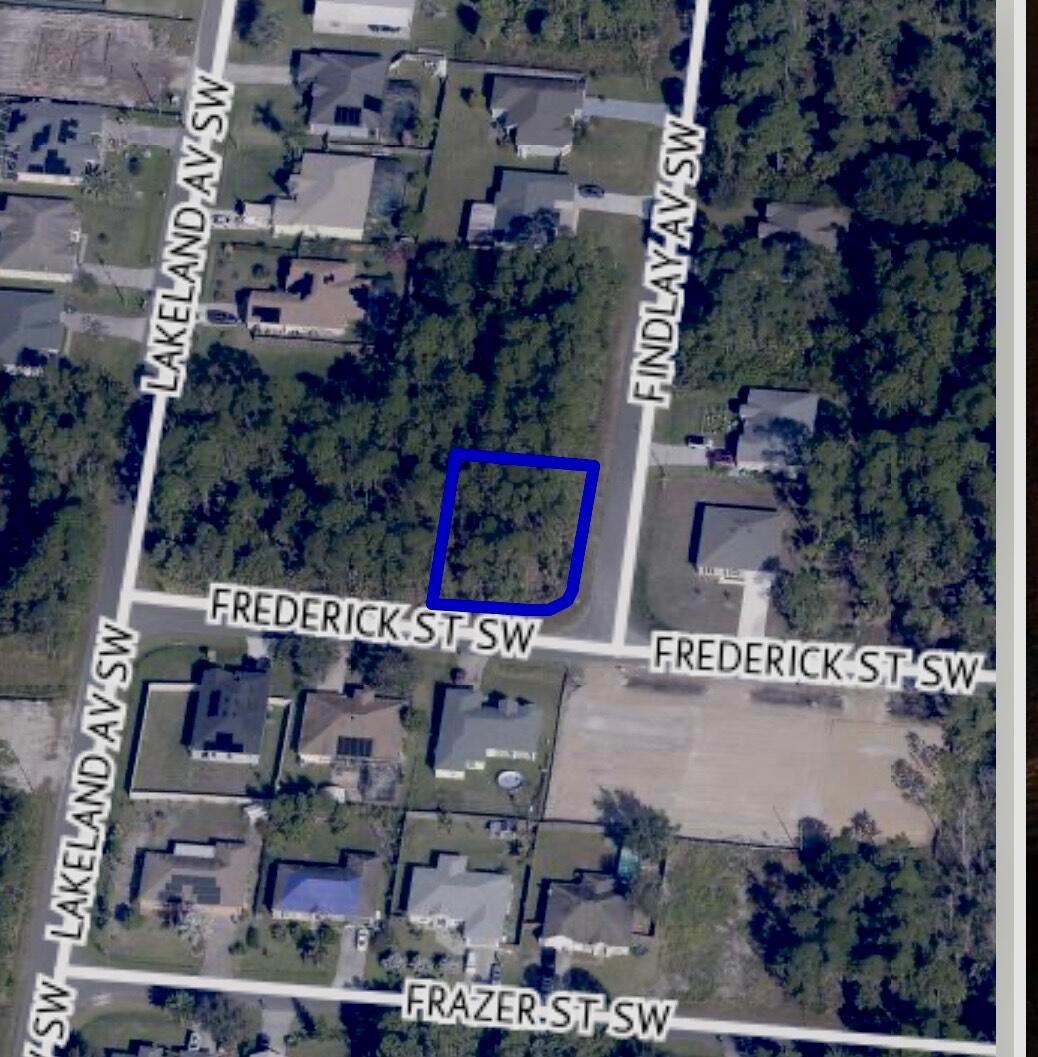 Corner Lot Opportunity in Palm Bay! This .24 acre corner lot at Frederick St SW and Findlay Ave SW is an excellent place to build your new home or hold as an investment .No HOA .With frontage on two Streets ,the property offers added Flexibility and design options .Enjoy all that Palm Bay has to offer ,including nearby parks ,nature preserves ,golf courses ,shopping ,dining ,and easy access to major roadways .Outdoor lovers will appreciate the proximity to Tukey Creek Sanctuary ,Castaways Point Park ,and the Indian River Lagoon ,with Atlantic beaches just a short drive away .Whether you're ready to build now or plan for the future ,this lot offers plenty of potential in a growing area of Palm Bay . Buyers to do their own due diligence and verify all information .