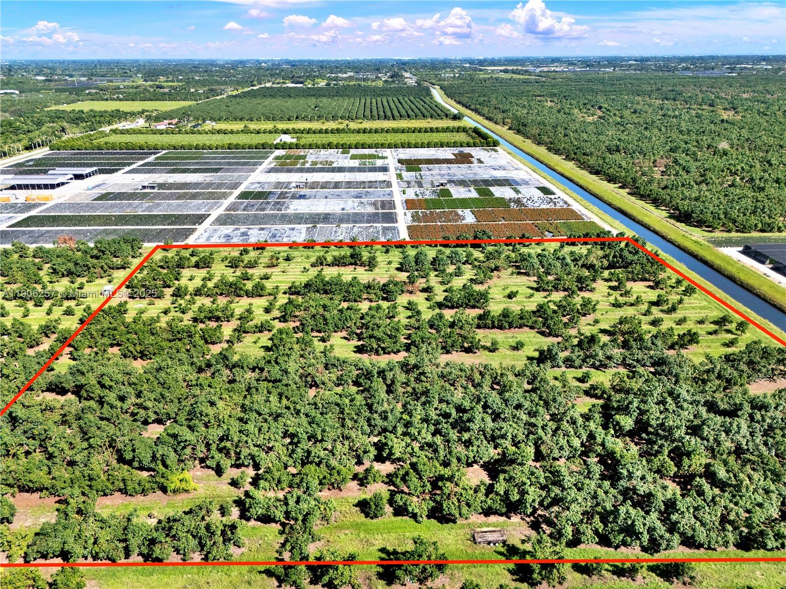 Discover this exceptional canal-front avocado grove on 8.81 acres in the heart of South Dade’s agricultural zone. The property features a full sprinkler irrigation system, is completely fenced, and boasts direct canal access — ideal for agri-use, investment, or a private estate retreat. Mature avocado trees are thriving, the grounds are professionally maintained, and the infrastructure supports both production and lifestyle potential. Rare opportunity combining canal-frontage and grove-income potential. This property can be sold together with folios 30-6833-000-0030 and 30-6833-000-0031—endless possibilities with 19 acres in total for sale.