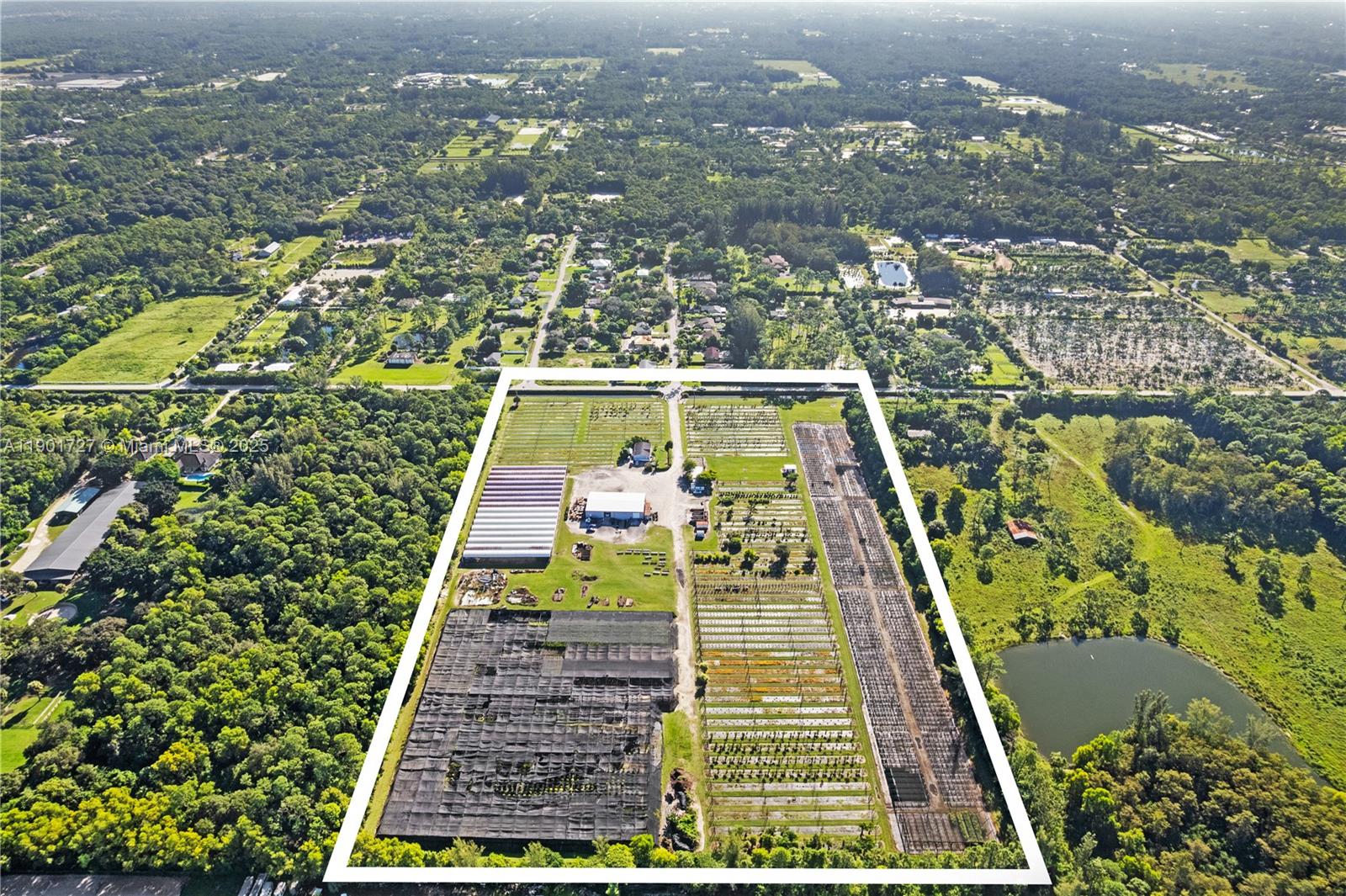 The 20-acre nursery is located on paved B Road in the Loxahatchee Groves section of Loxahatchee, FL. Zoning: AR, Agricultural Residential. Future use: RR-5, Rural Residential. Highest & Best use: As Vacant: Equestrian. As Improved: Interim use as a Plant Nursery and future redevelopment with an Equestrian use. Site improvements include 7+/- acres of growing area with partial ground cover and 9+/- acres of shaded growing area. These 16+/- acres are fully irrigated with an above-ground sprinkler system with 2 wells and pumps. 6000+/- sq ft steel warehouse/shop building is built on a dock-height concrete floor. An aluminum modular residence containing 1,824+/- sq ft, a modular mobile home type office containing 960+/- sq ft, two aluminum storage sheds and a wood frame pump house/storage bldg.