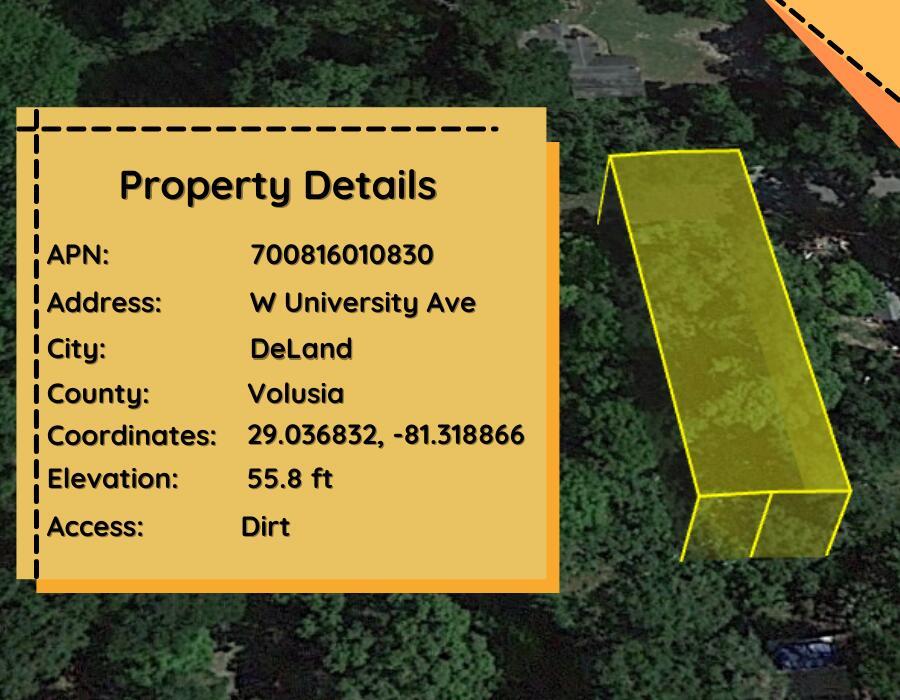 Discover the perfect canvas for your dream home with this stunning 50 x 132 lot located on W University in the charming city of DeLand, Florida. NO HOA Community. Just 2 miles away from Downtown DeLand's Historic Garden District. This prime piece of land offers a unique opportunity to build your ideal residence in a community known for its rich heritage and vibrant atmosphere. DeLand, Florida, is a charming city located in Volusia County. With its close proximity to major attractions like Disney and Daytona Beach, DeLand presents an ideal blend of small-town charm and access to the excitement of Central Florida.