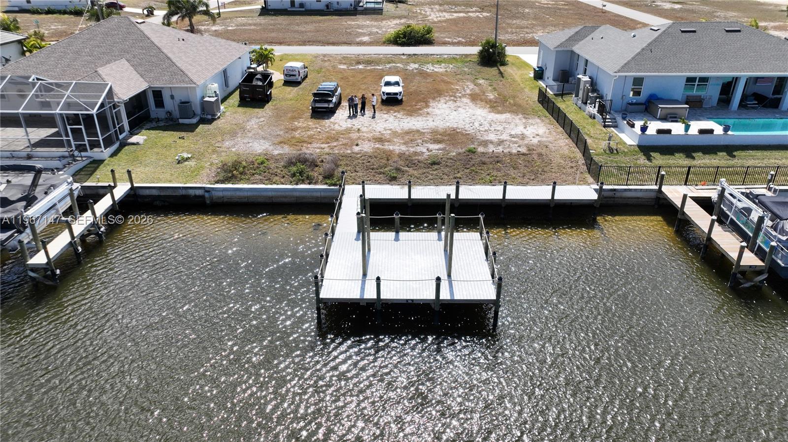 Build Your Waterfront Oasis in One of Northwest Cape Coral’s Most Established Luxury Enclaves. Opportunities like this are rare. This exceptional homesite is located on one of the widest canals in Northwest Cape Coral, surrounded by beautifully luxurious custom homes—ensuring immediate curb appeal, a prestigious setting, and strong long-term value. This land (Dimensions:80 x 125 x 80 x 125, more than 10,000 SqFts) is fully equipped with a brand-new concrete seawall. and an expansive private dock, with structural footings already in place for your custom Tiki Bar. This is the perfect canvas to design a modern coastal masterpiece featuring a resort-style pool, outdoor kitchen, and seamless indoor-outdoor living—ideal for embracing the Florida boating lifestyle. Location is key. Just steps from Crystal Lake Park—renowned for scuba diving, walking trails, and boat ramps—and minutes from Charlotte Harbor Preserve State Park. Strategically positioned only 4 miles from the highly anticipated Seven Islands Project, a transformative mixed-use marina and commercial development set to redefine the area. The future is here—secure your place in it. Submit your offer today and start building your waterfront vision.