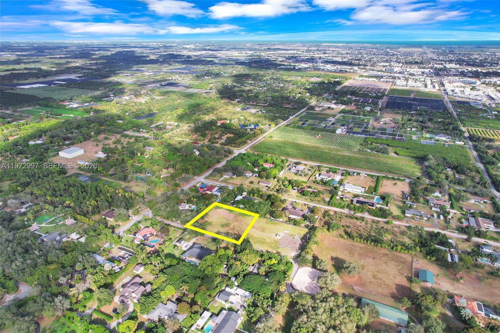 Welcome to the Redlands Reserve, a rare opportunity to acquire two side-by-side 1-acre cleared parcels (totaling 2 acres) in the Redlands. Purchase individually or combine both to create one expansive 2-acre estate. Each lot is a separate legal parcel with paved road frontage, its own well utilities in place, and zoning that allows for one residential home per acre. Ideal for builders or spec developers seeking to construct two estate homes, or for an end user looking to build one large luxury residence with added privacy and scale. Buildable & cleared condition reduces site preparation costs and helps accelerate development timelines. Generous lot size supports luxury home designs with room for pools, guest houses, detached garages, equestrian features, and expansive outdoor living. In addition to residential construction, the property may allow for pasture, nursery, or agricultural-related business uses (buyer to verify permitted uses with Miami-Dade County), providing added investment flexibility. No HOA. Strong resale potential in an established estate-home corridor known for custom builds and long-term value. See next door lot MLS#A11973076