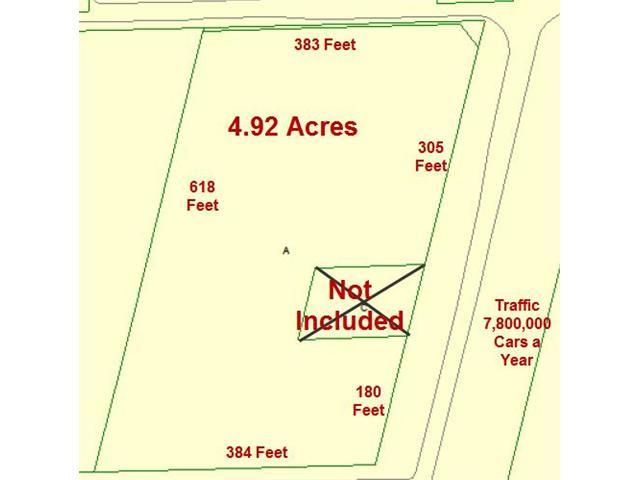 This REO is a 4.94 acre site with almost 8,000,000 cars per year passing by. There is 485 front feet exposed to the highway. Zoning is commercial use for many types of businesses or church.There is a billboard on site.