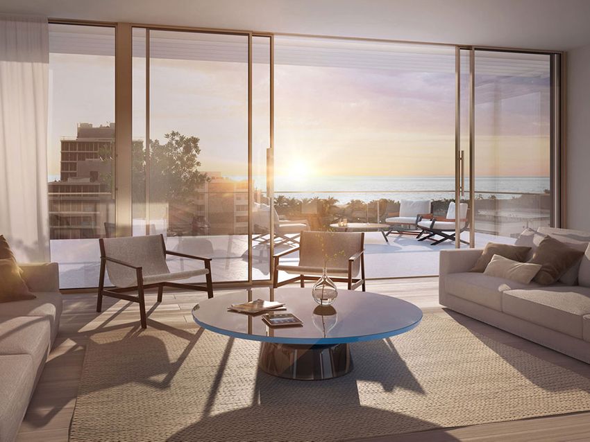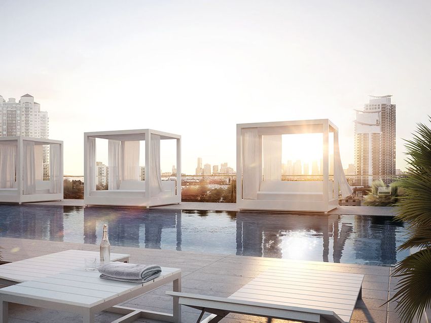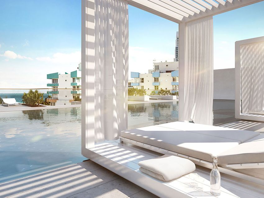 Великолепные пентхаусы имеют уникальную высоту потолков 5,4 метра. Почти 140 квадратных метров отведено под террасы глубиной более 3 метров, выходящие на восток. Из здания открываются изумительные виды на океан и полосу пляжа Майами-Бич.