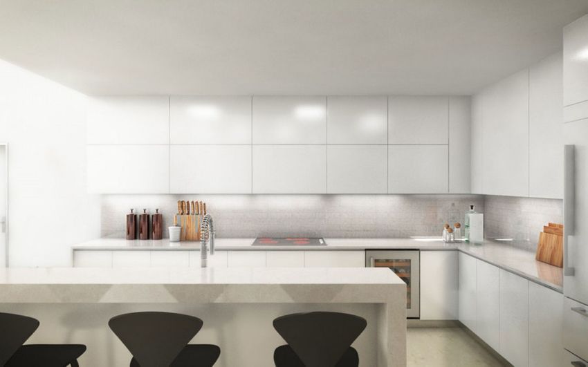 В величественном фойе здания, дизайн которого также разработает компания Yabu Pushelberg, будут выставлены работы современных художников и скульпторов. Riccardo De Marchi создал изящную стойку портье из плексигласа и стали, оформил стены фойе, превратив стандартное помещение в эксклюзивную инсталляцию современного искусства. Коридор с деревянными панелями авторства Yabu Pushelberg ведет к грандиозному атриуму с лифтами, оформленному скульптурами Markus Linnenbrink.