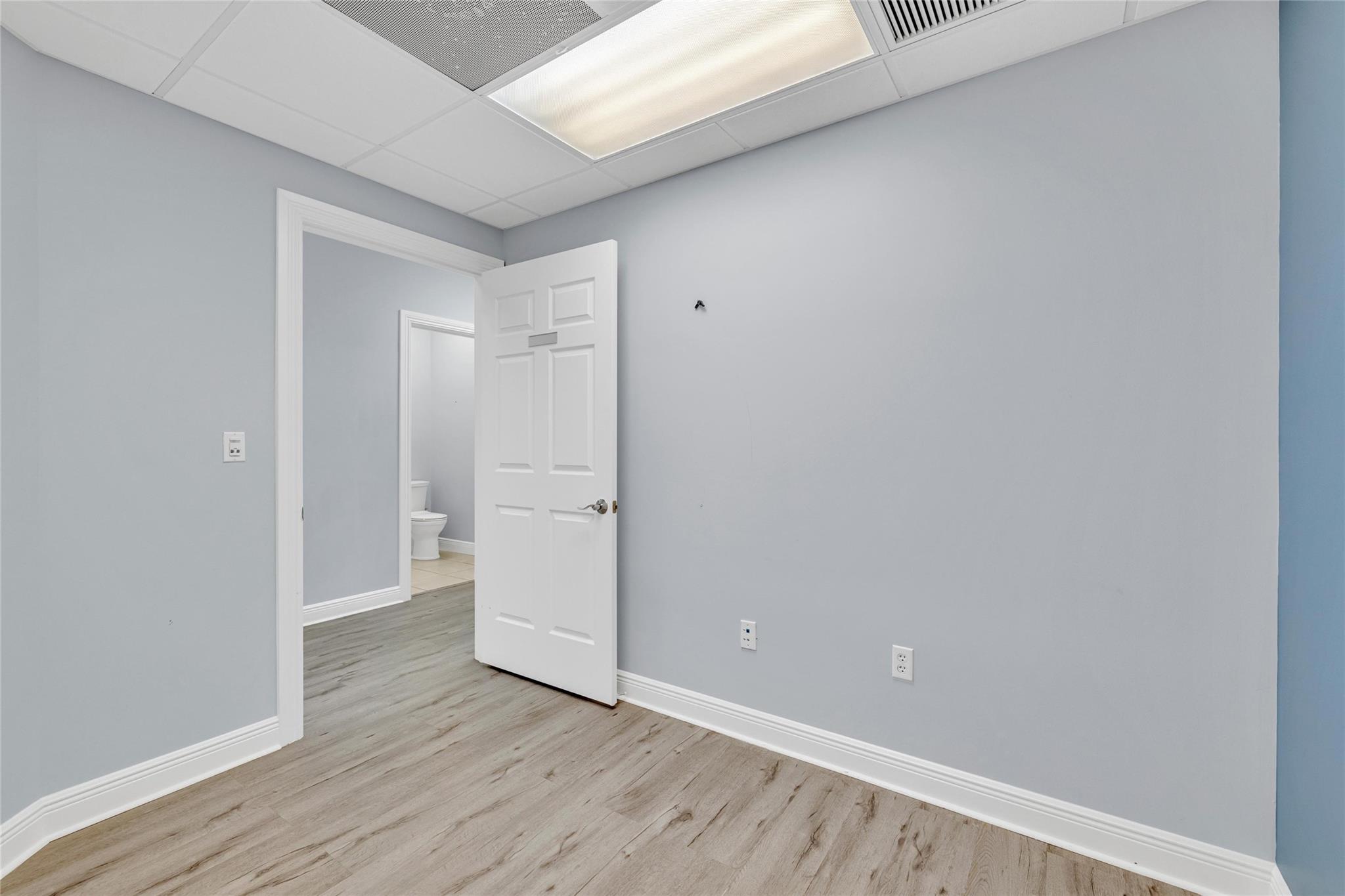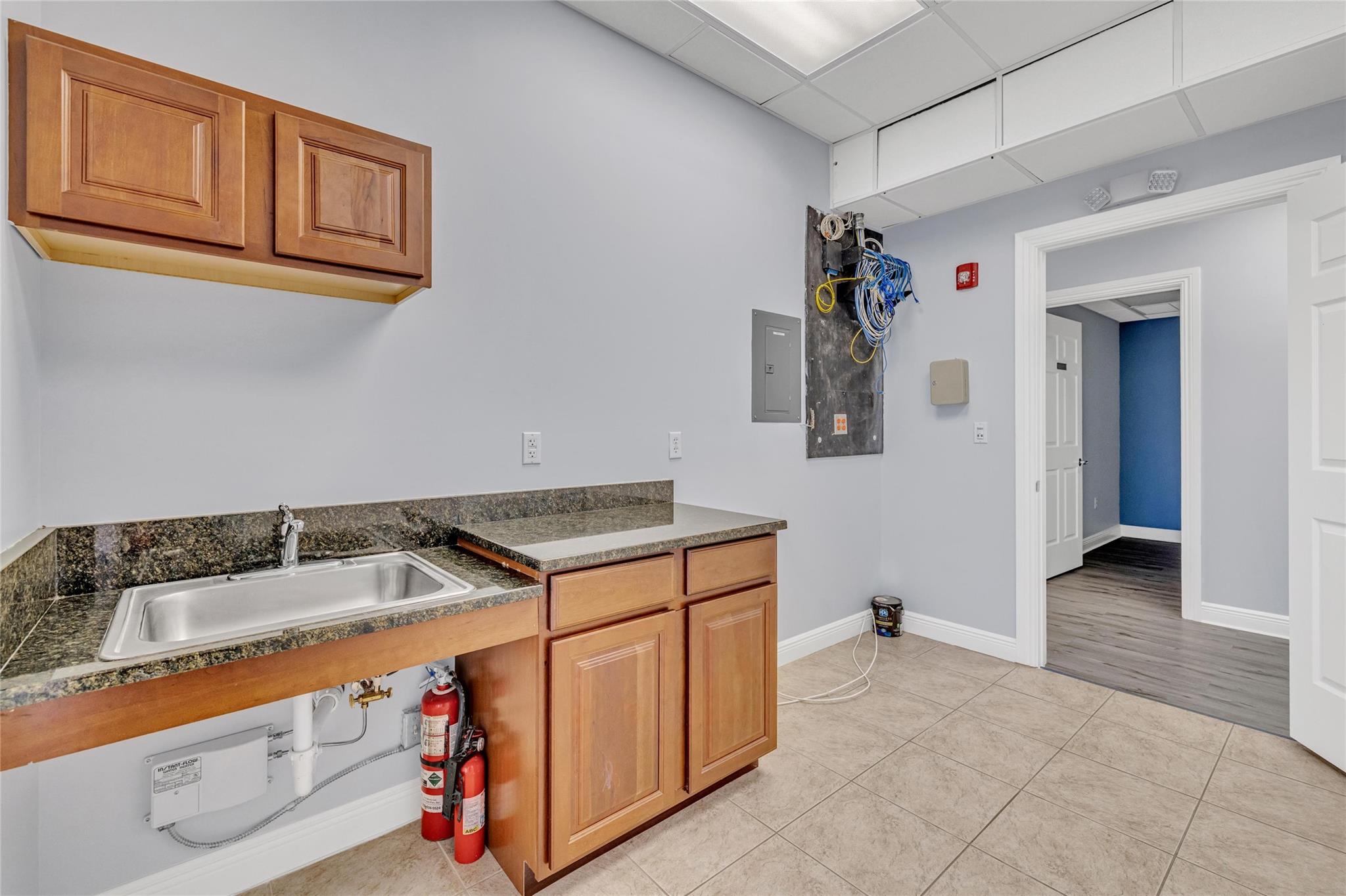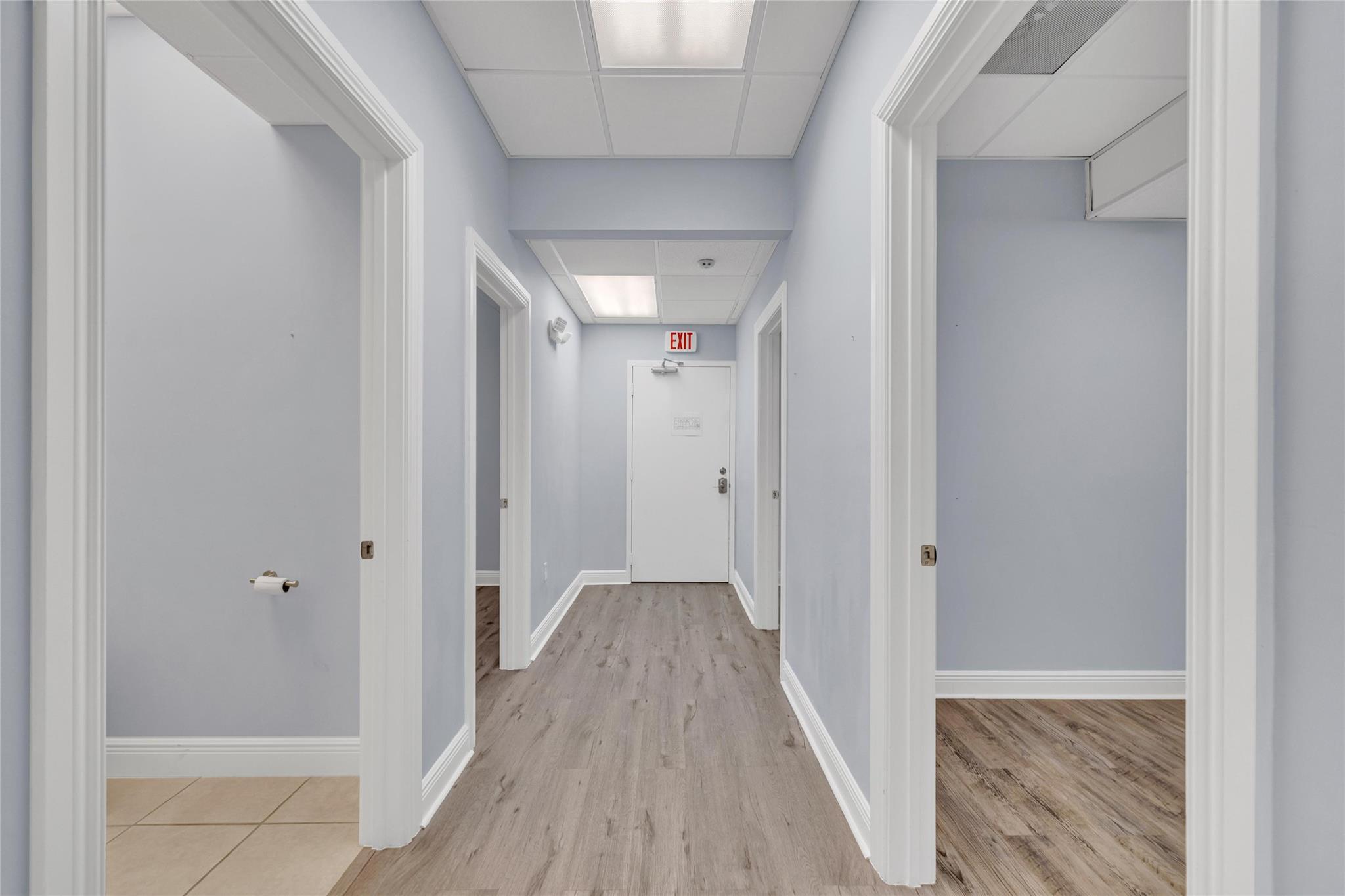 Two-story building located in the vibrant community of Oakland Park, Florida. This traditional office building features a Mid-Century Modern design with prominent vertical windows that provide natural light, creating an inviting atmosphere for clients and employees. The recently updated ground-floor unit, situated at the NE corner of the building, includes 7 private offices, a conference room, a restroom, and a kitchen area. The building offers common area restrooms and ample parking, including 2 assigned spaces and plenty of free parking. move-in ready, following amenities included in the common area maintenance (CAM): fire alarm, elevator access, building insurance, maintenance and repairs, water and electric service, landscaping, pest control, and upkeep of common hallways and restrooms