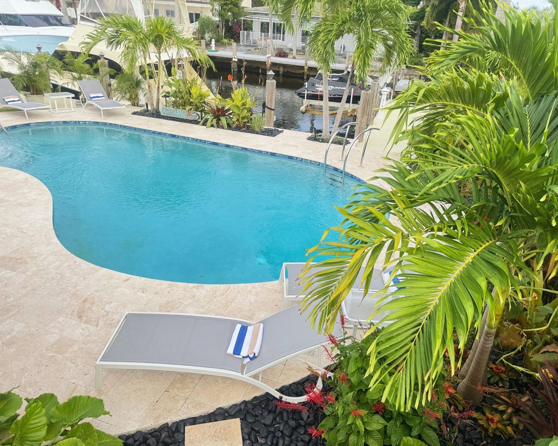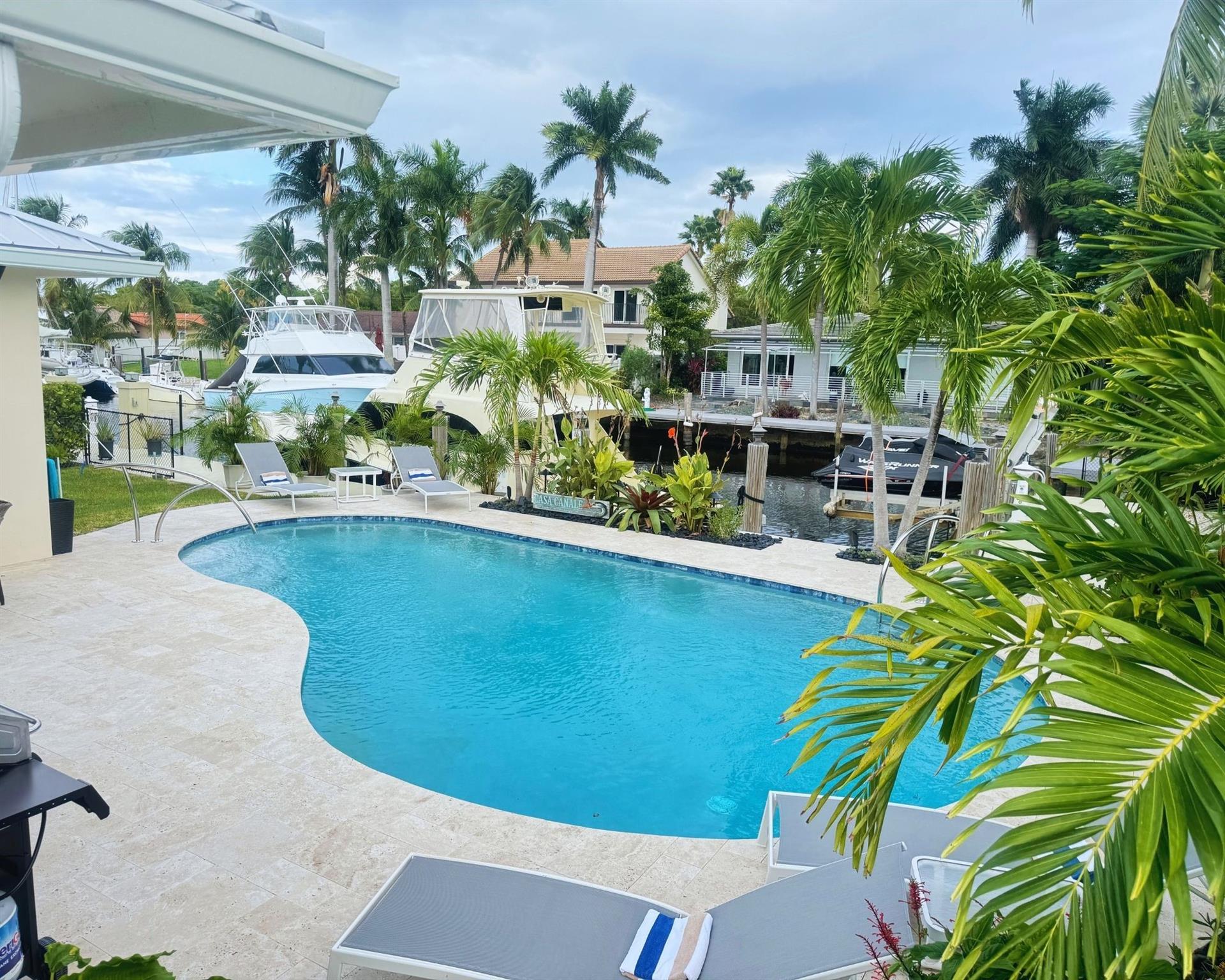 Welcome to Casa Canale--A STUNNING RENTAL--COMPLETELY REMODELED (down to the studs)--4 Bed/3 ba WATERFRONT (no fixed bridges), Pool Home in the heart of E Dania Bch w/many fun activities, 10 min from airport; 2 blocks to recreational park; 4 blocks to Dania Casino; beach just 1 mile . Central location 50 min to Miami; 55 min to West Palm & 10 min to Las Olas. Avail as a short-term (vacation), Seasonal (3-4 mos) or LT Rental. Prop is fully fenced, very pvt, dock for 350ft vessel; a floating dock, paddle bds; 2 kayaks, gorgeous kitchen w/wet bar, xtra lg primary suite, King, & Dbl Twin Guestrooms share a bath & a Queen en suite complete. Close 2 yacht yard area--Jai Lai & Casino walkable. See Supp Remarks 4 pricing as a ST Rental. Rentals less than 181 nites subject to 13% occ tax.