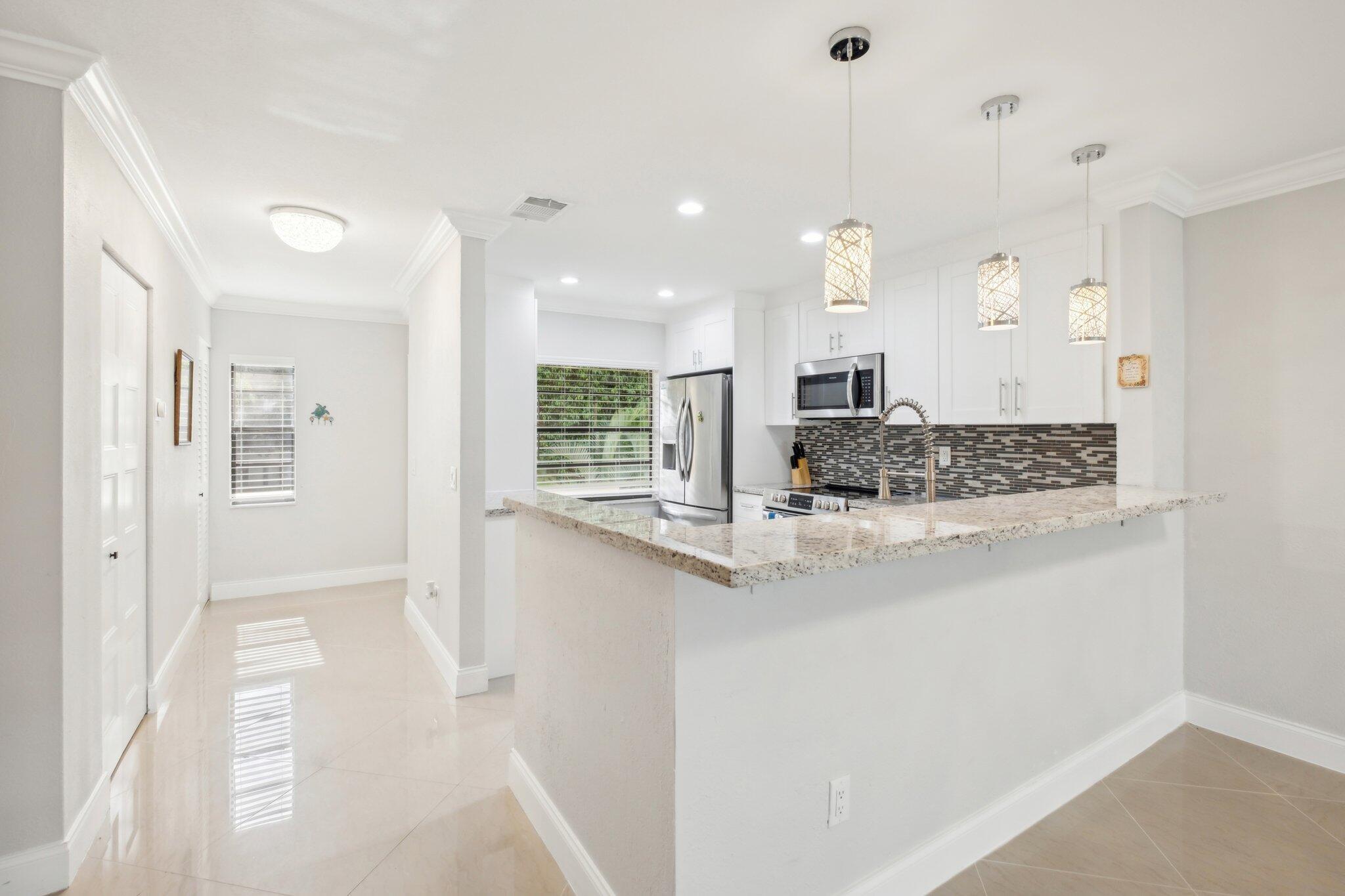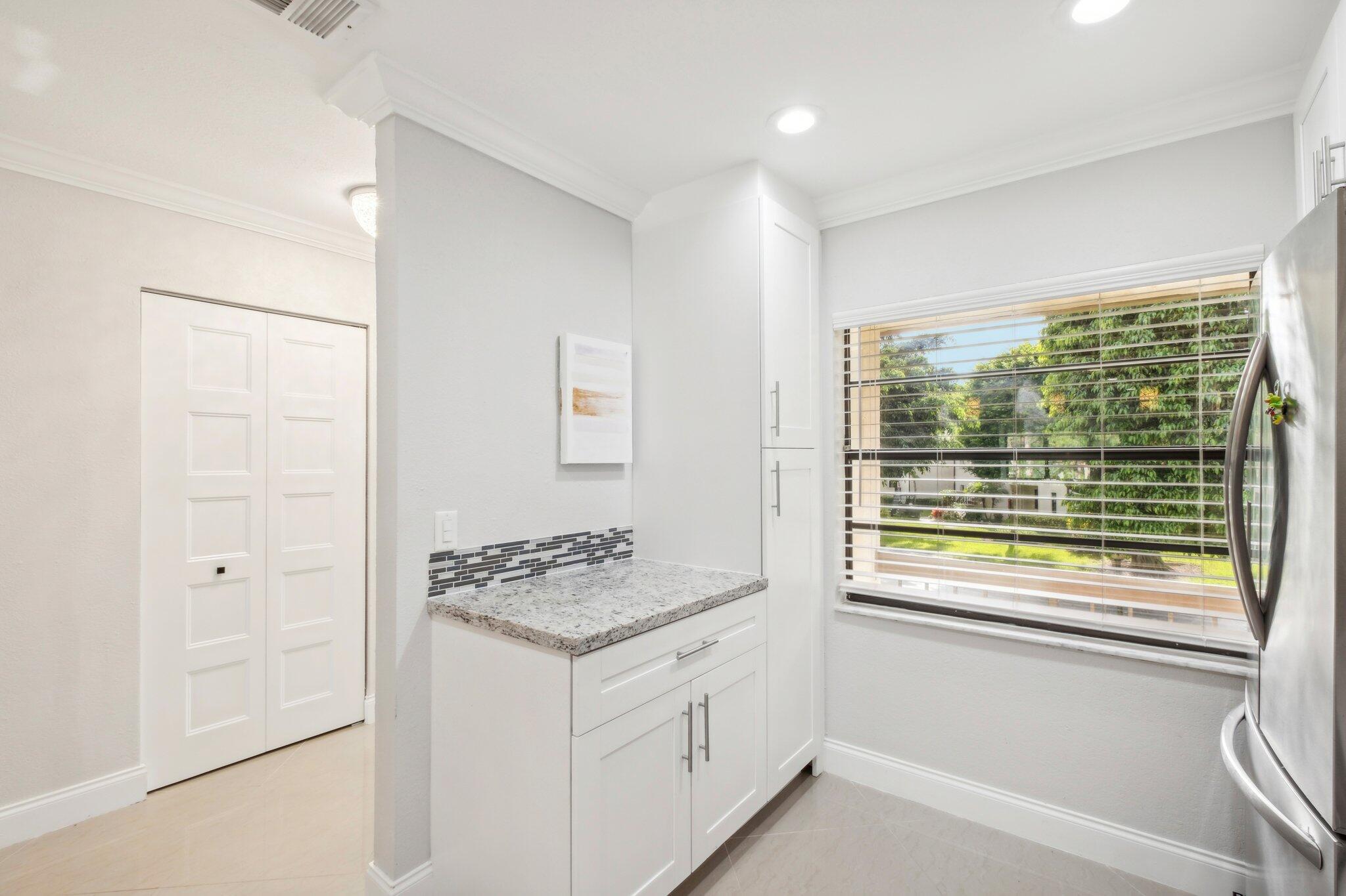 This captivating condo in the highly desirable Boca Lago community offers a blend of luxury and convenience. Step into this fully renovated 2-bed, 2-bath residence, where modern elegance meets comfort. The home features pristine porcelain floors throughout, and the kitchen is a chef's delight with stainless steel appliances, sleek wood cabinets, and stunning granite countertops. The master bathroom is a true retreat with a dual vanity and a spacious walk-in shower. Relax in the inviting living room that opens up to a patio, offering breathtaking views of the golf course. As part of a gated 55+ community, you'll have access to fantastic amenities, including a heated pool and social