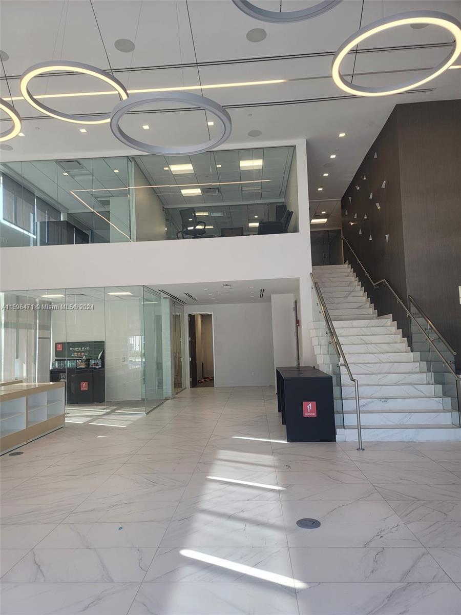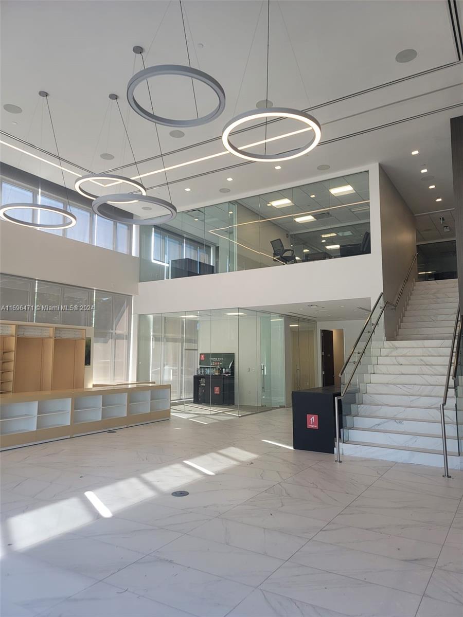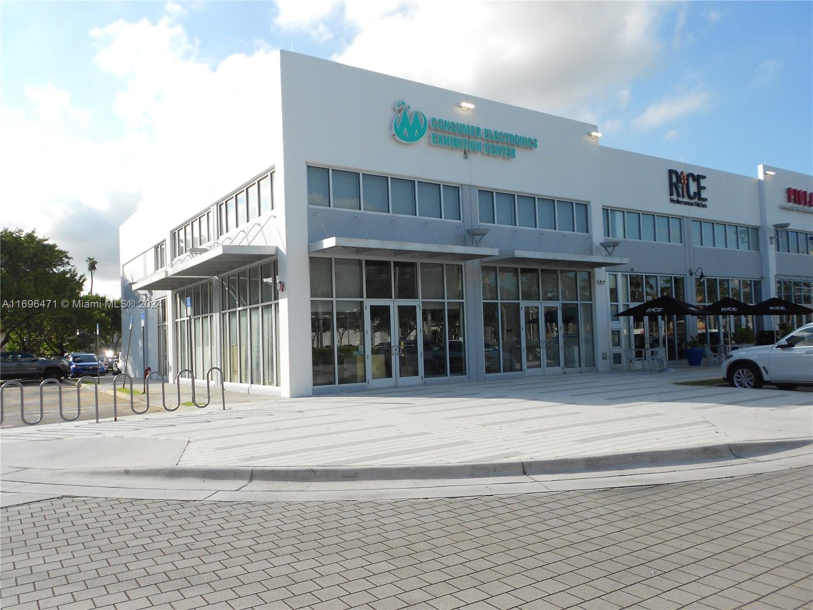 High traffic volume, retail or professional office, End Cap Unit, direct Plaza entrance exposure, high ceiling entry, reception area, open floor showroom, 2 offices, lunch room, ample storage, phone/computer room on first floor, stair case and elevator to second floor, 5 glassed view offices, 3 cubical spaces, and conference room area. Less than one mile North of SR836 (Dolphin Expressway) in Doral.