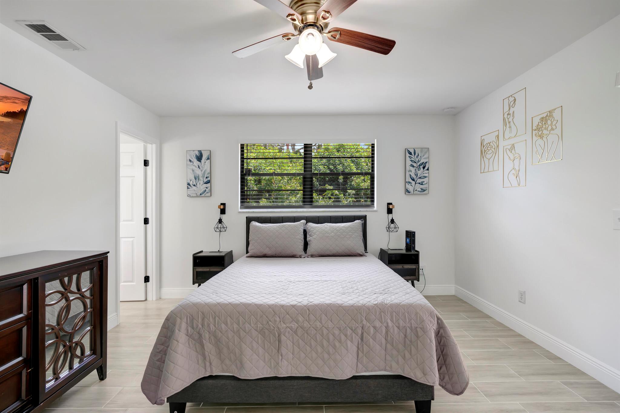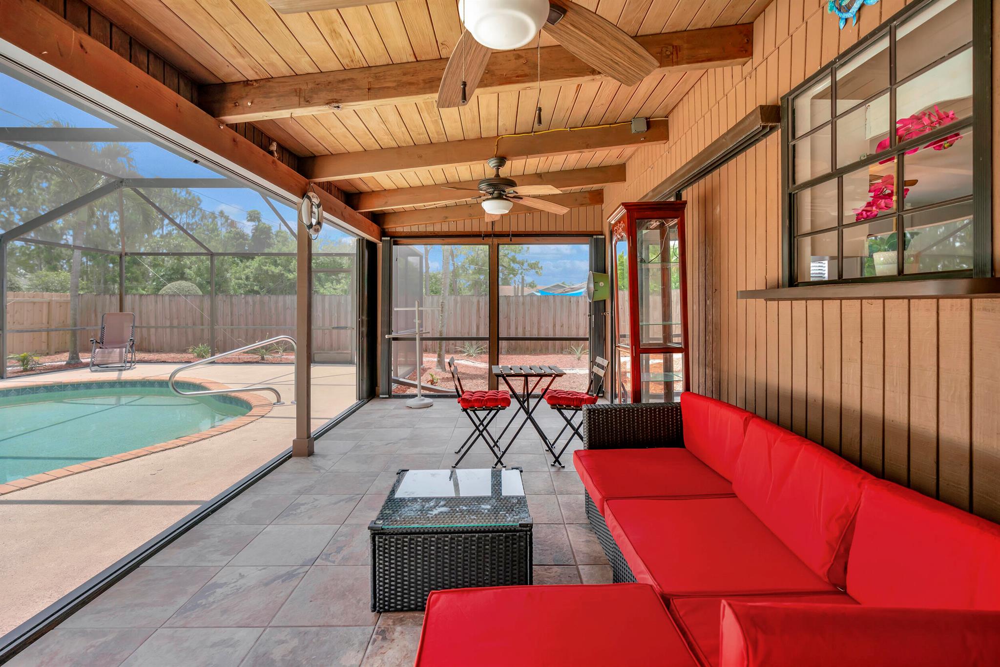 **SHORT & MID TERM RENTAL**Looking for a comfortable, relaxing home for a minimum of 3 months? This beautifully renovated 2-bedroom, 2-bathroom house (1,292 sq ft) offers a fully furnished, stylish space perfect for short-term living. The kitchen is fully equipped. The home features modern ceramic tiles throughout and updated bathrooms, with a spacious layout ideal for both relaxation and working from home. Washer and dryer are available in the house. The private outdoor patio with a screened-in pool, surrounded by lush nature and a privacy fence, is a serene retreat. Enjoy the perfect balance of comfort, style, and privacy--secure your stay today!