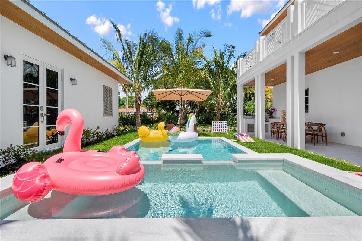 Discover the ultimate Palm Beach lifestyle in this newly completed 5-bedroom, 6.5-bathroom estate featuring a spacious living room, private office, chef's kitchen, and spa-inspired baths. Designed for both relaxation and entertaining, the property boasts a sparkling pool, hot tub, and a stylish guest house amidst lush tropical landscaping. With flexible rental terms, professionally managed services, and a fully turnkey experience, this luxurious retreat seamlessly blends comfort, modern convenience, and elegance in the heart of paradise, making it perfect for short or long-term stays