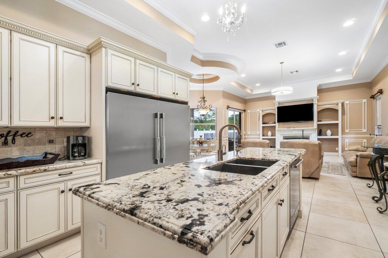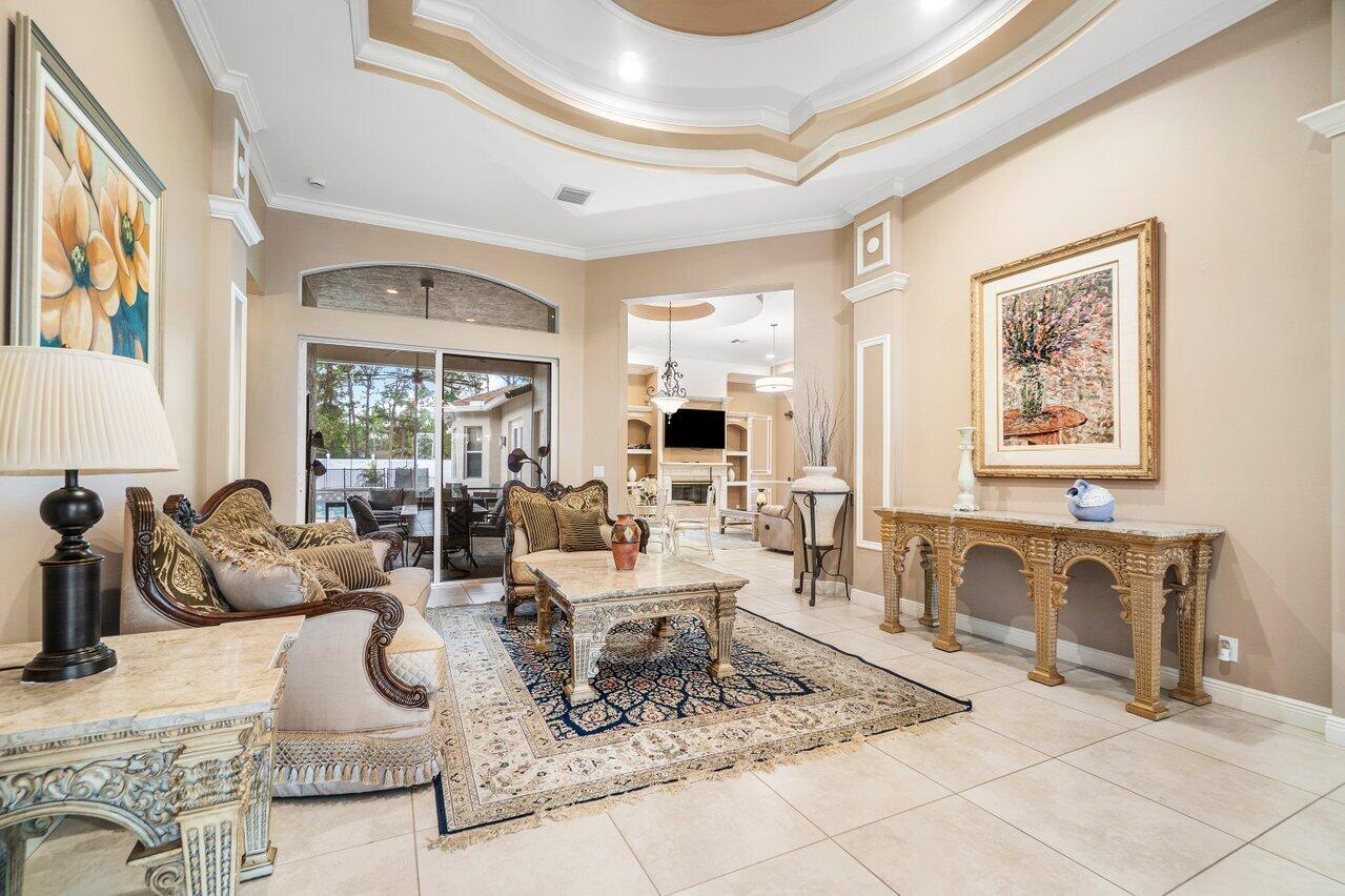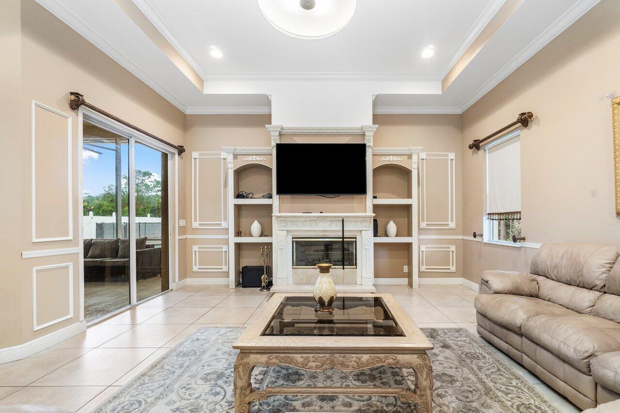 Welcome to your dream home in the heart of unincorporated Palm Beach County! This luxurious estate boasts 4 bedrooms, 5 baths, and an ideal blend of space, privacy, and elegance. The main house features 3 bedrooms, 4 baths, and a versatile office, while the detached 1-bedroom, 1-bath mother-in-law suite offers the perfect private retreat for guests or extended family. Step inside the main house to find a bright and inviting living room with large windows that flood the space with natural light. Custom moldings and elegant shadow boxes on the walls and ceilings add a touch of sophistication. The open-concept gourmet kitchen is a chef's dream, complete with stainless steel Sub-Zero-style appliances, granite countertops, a gas stove with a convenient pot filler, and a seamless fl