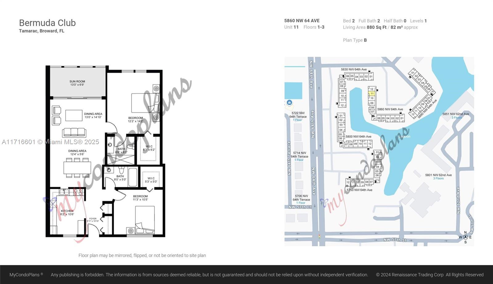 Very nice 2br/2ba top-floor apt with gorgeous lake view in Bermuda Club a well-known 55+ Community in Tamarac. Laminate floors throughout - freshly painted - split bedroom layout - walk-in closets in both bedrooms -Laundry room on the same floor - screened balcony with lake view - extra storage unit - rent includes basic cable tv, water & sewer, and pest control - There is 1 assigned parking space and lots of guest parking - Community features 4 heated pools, ballroom, exercise room, movie room, game/card room, library, active clubhouse with lots of activities. Within walking distance to Public transportation and shopping. ===Important - See Broker's remarks===