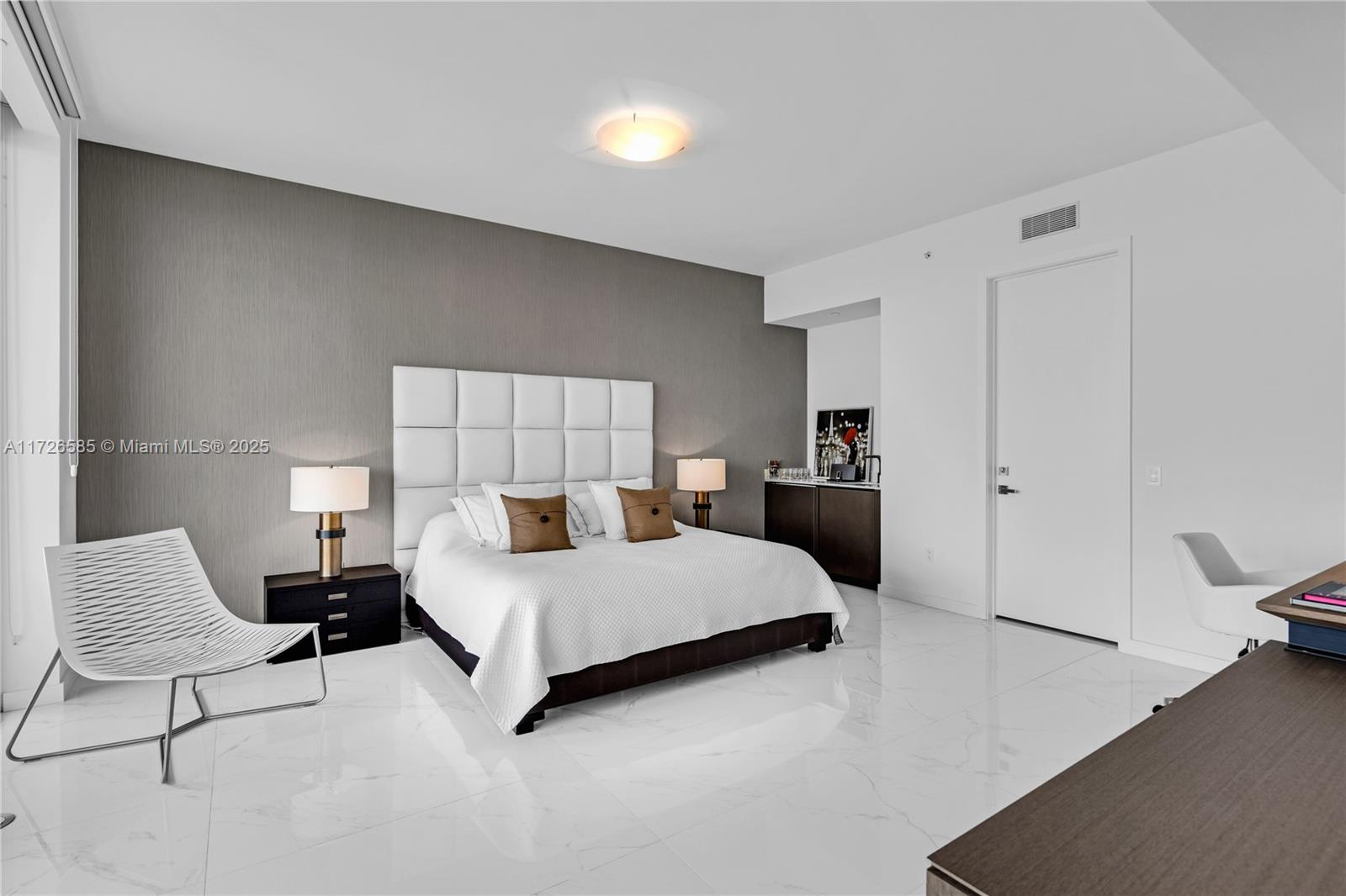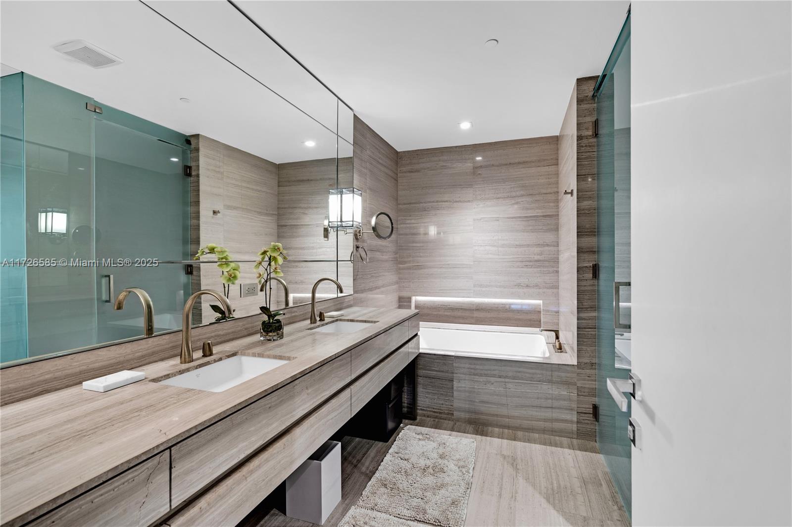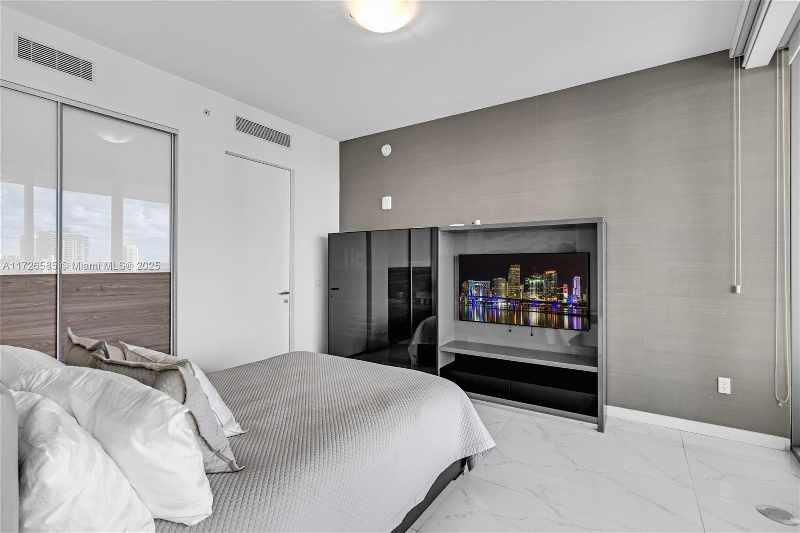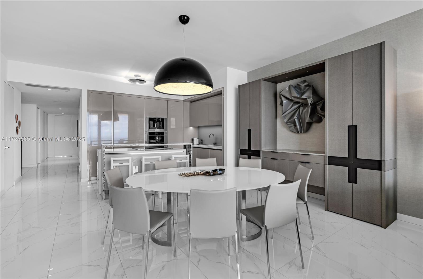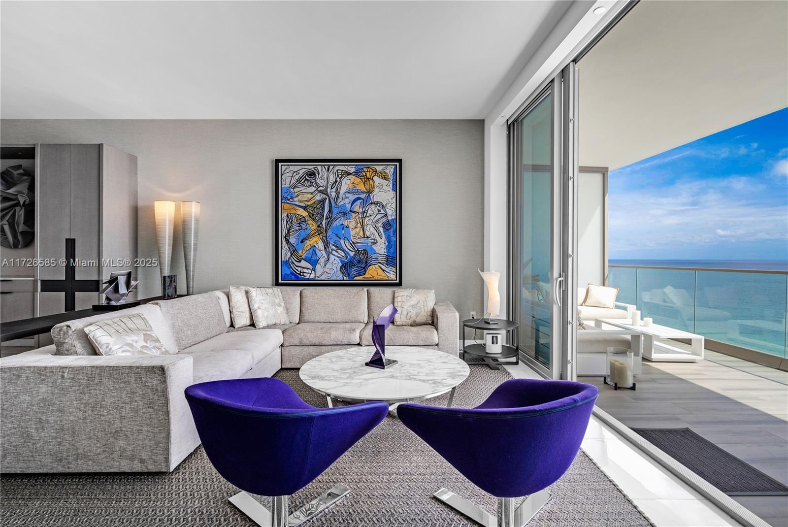 Exquisite, fully furnished by renowned interior designer, flow-through unit at the exclusive beachfront Armani Casa. Private elevator leads you to this spectacular 3BR + Den, Staff quarters and 5.5 baths. Floor-to-ceiling windows and expansive terraces throughout encompass beautiful direct East and West views with built-in summer kitchen on the beach side. Blackout and sheer shades in bedrooms and custom-built closets. Armani Casa features state-of-the-art amenities such as restaurants, bar, beachfront pool, business center, spa, fitness center, theater room, cigar and wine room, children's play area, security, concierge, and valet parking. SHORT TERM RENTAL ONLY