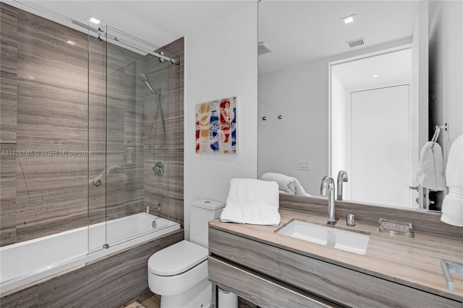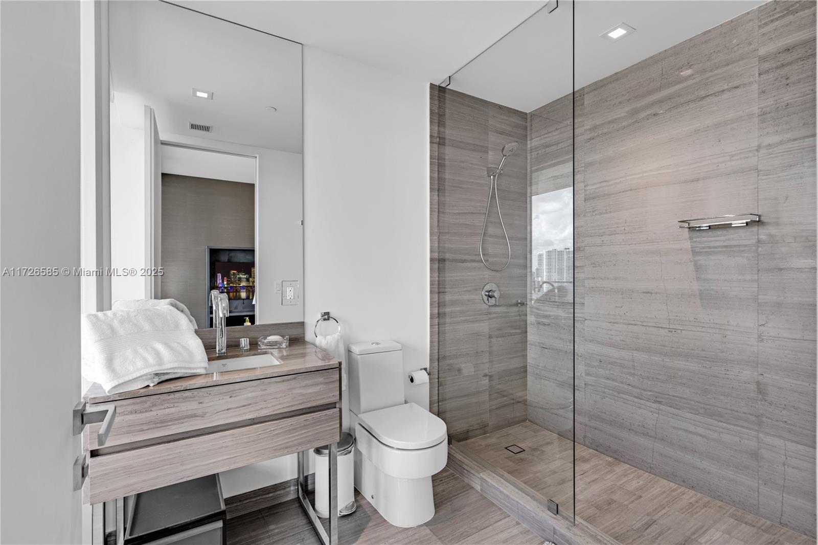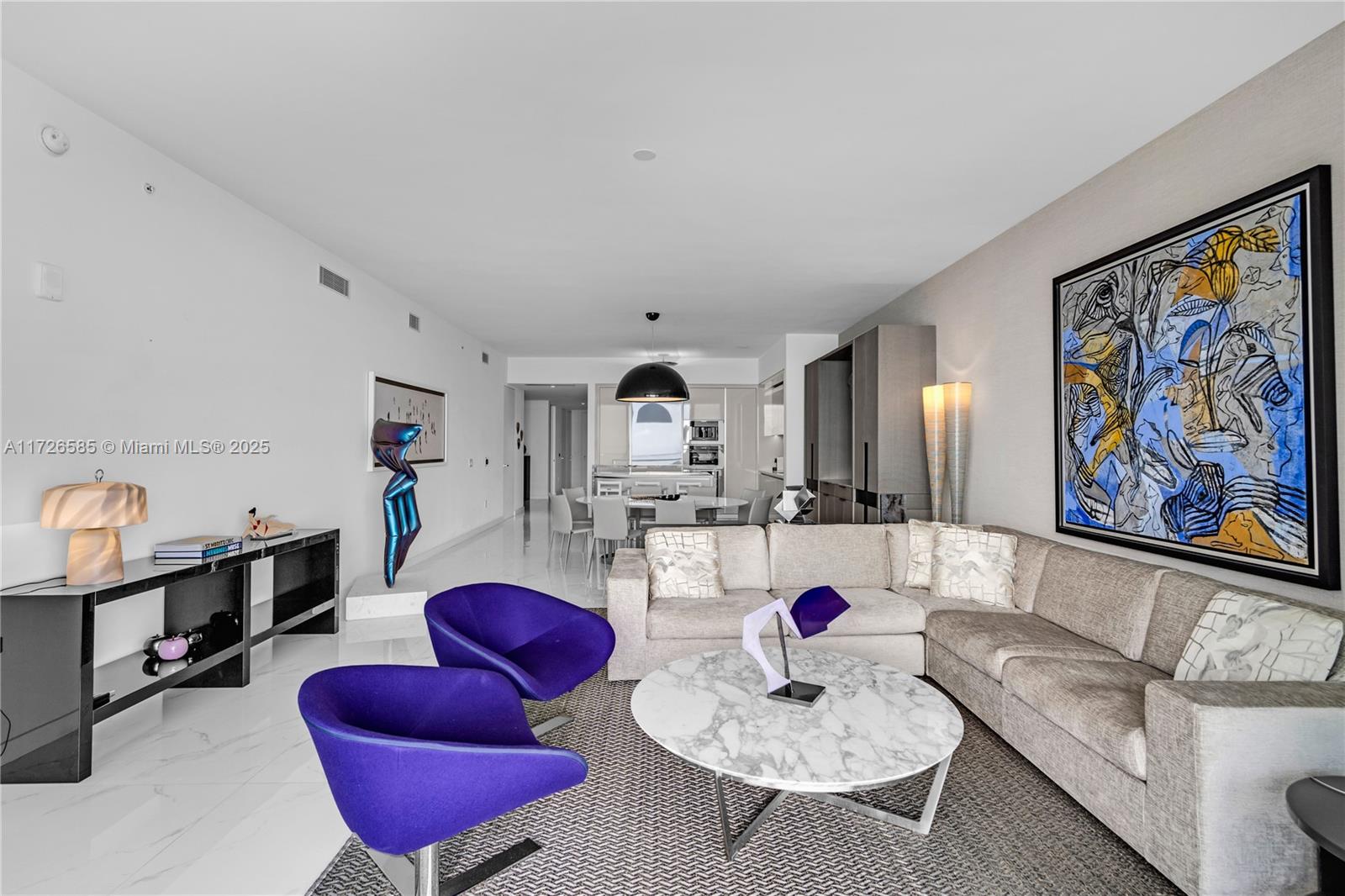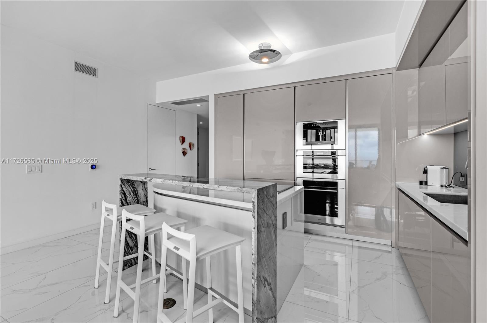 Exquisite, fully furnished by renowned interior designer, flow-through unit at the exclusive beachfront Armani Casa. Private elevator leads you to this spectacular 3BR + Den, Staff quarters and 5.5 baths. Floor-to-ceiling windows and expansive terraces throughout encompass beautiful direct East and West views with built-in summer kitchen on the beach side. Blackout and sheer shades in bedrooms and custom-built closets. Armani Casa features state-of-the-art amenities such as restaurants, bar, beachfront pool, business center, spa, fitness center, theater room, cigar and wine room, children's play area, security, concierge, and valet parking. SHORT TERM RENTAL ONLY
