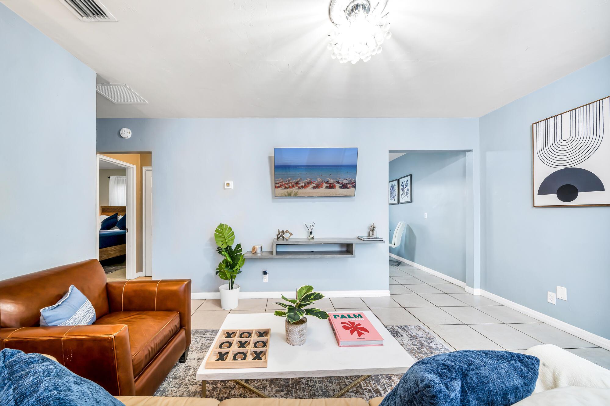Fully furnished and remodeled classic, one-story, 2BR/1BA beach home offered as a Seasonal Rental. This private, tropical, fully-fenced backyard terrace is an entertainer's dream! Giant backyard. The home sleeps 6 guests. The total monthly rent is $3,950 for an annual lease.