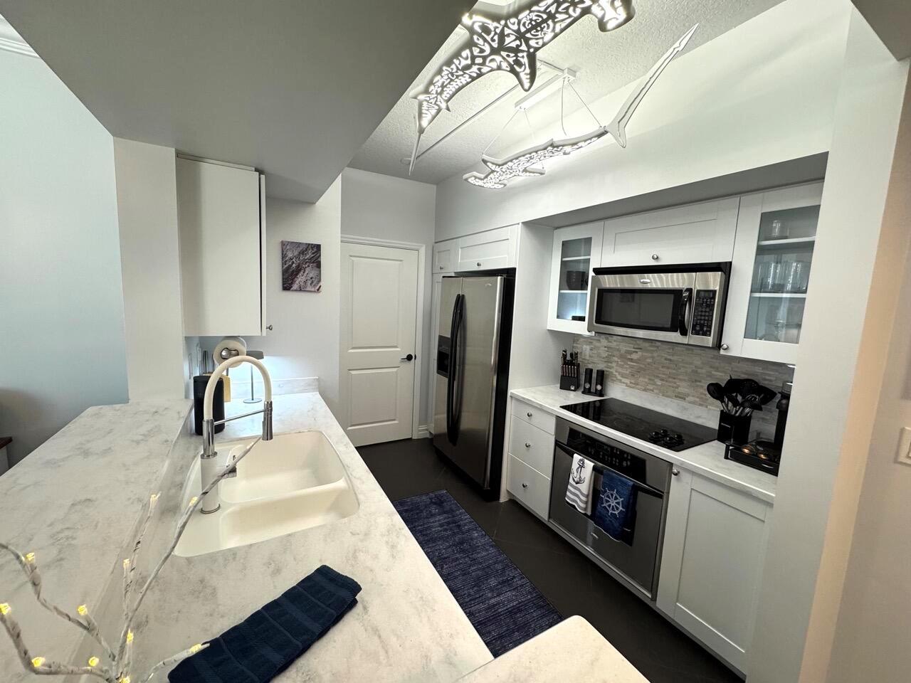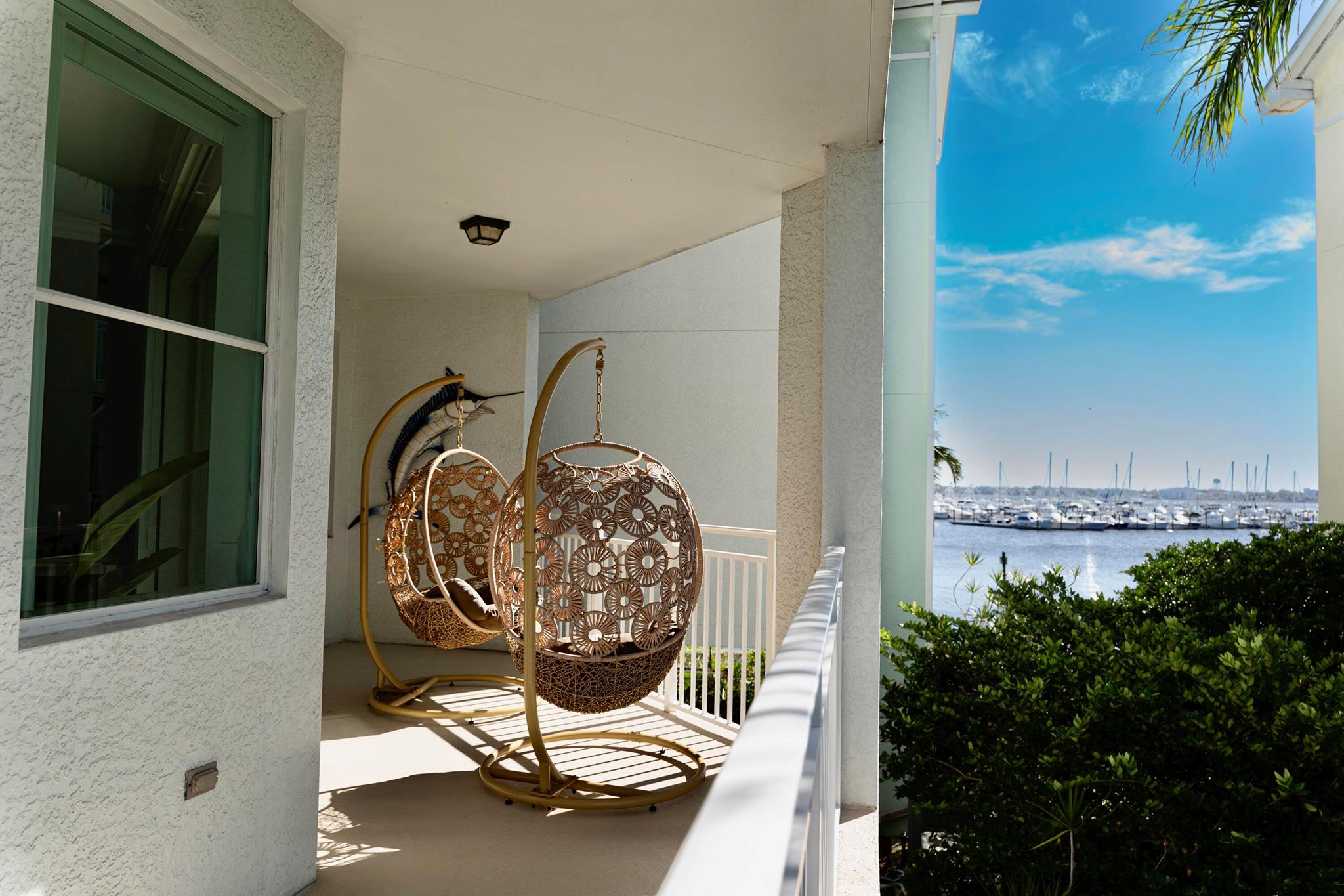 Discover luxury at The Harborage Yacht Club & Condos in this fully furnished, turnkey 2-bedroom, 2-bath waterfront condo, meticulously renovated with modern maritime charm and high-end upgrades. Enjoy breathtaking sunrise views from the master bed through a wall of glass overlooking the marina and Roosevelt Bridge. Thoughtful built-ins in all closets, spacious walk-ins, impact windows, luxury slate flooring, stone countertops, and stainless-steel appliances add to the appeal. The secure gated building offers covered parking and elevator access. Amenities include a vibrant community, clubhouse with fitness center, sauna, steam room, billiards, two pools, hot tub, poolside cafe, on-site dining at Tidehouse and Latitude 26, and boat slips for vessels up to 100 feet. Just bring your suitcase.